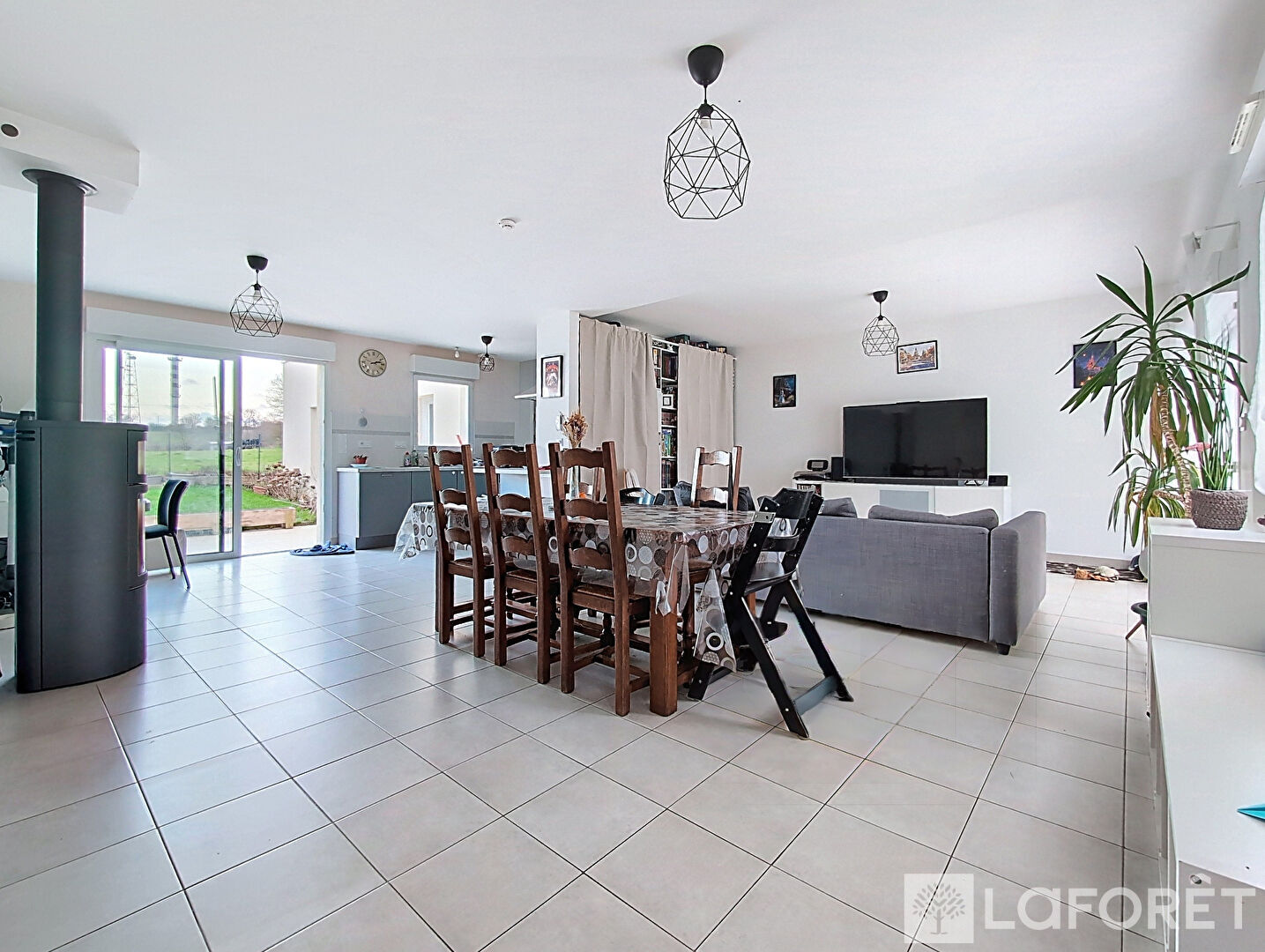 Salon lumineux équipé d'un poêle à bois, parfait pour des soirées chaleureuses