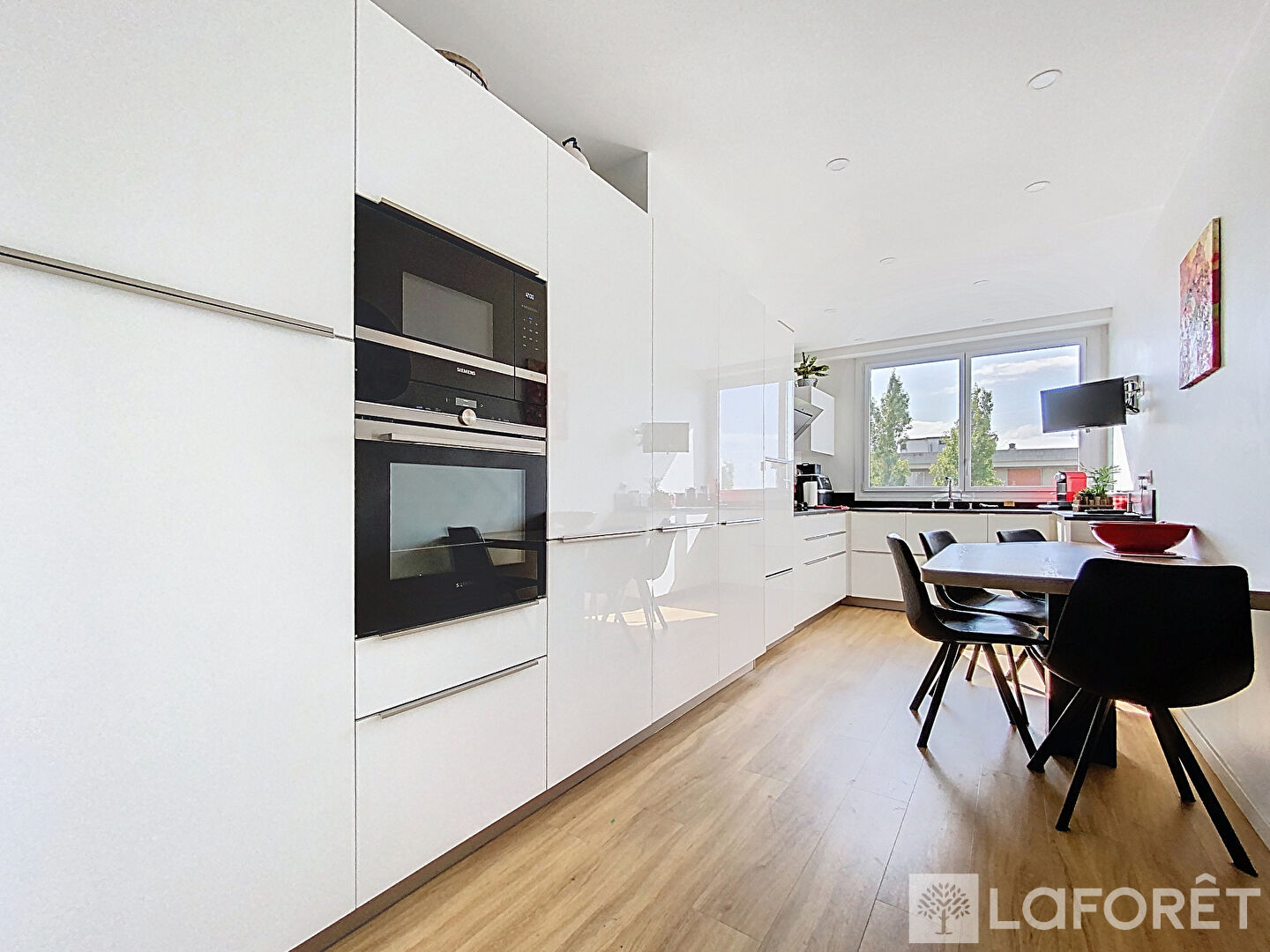 Ce logement lumineux aux prestations de qualité vous séduira dès l'entrée, qui dessert une cuisine moderne, aménagée et entièrement équipée (four, micro-ondes, plaque de cuisson, hotte, lave-vaisselle et réfrigérateur). Vous profiterez d'une spacieuse pièce de vie de plus de 35 m² sur parquet massif, comprenant un espace salon et salle à manger, le tout prolongé par un balcon offrant une vue imprenable sur la ville.