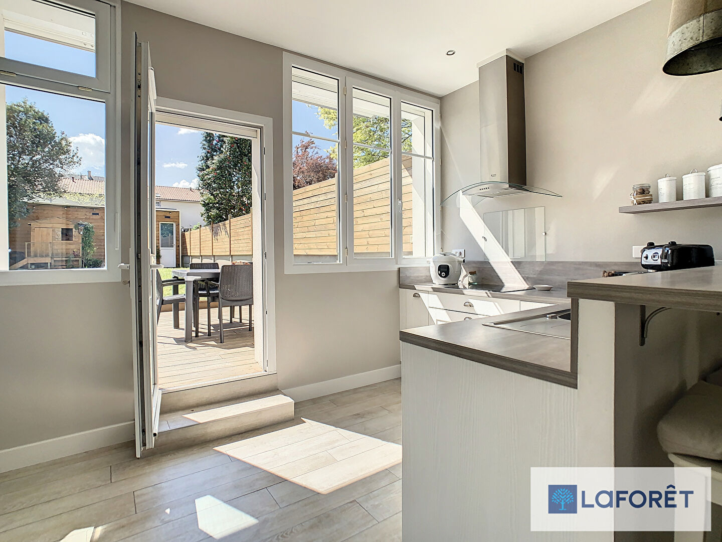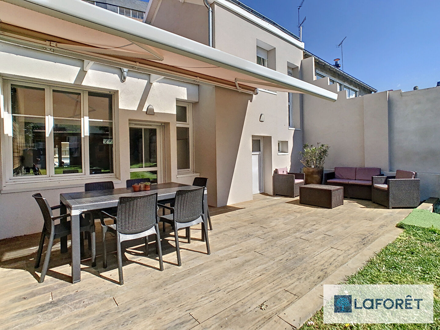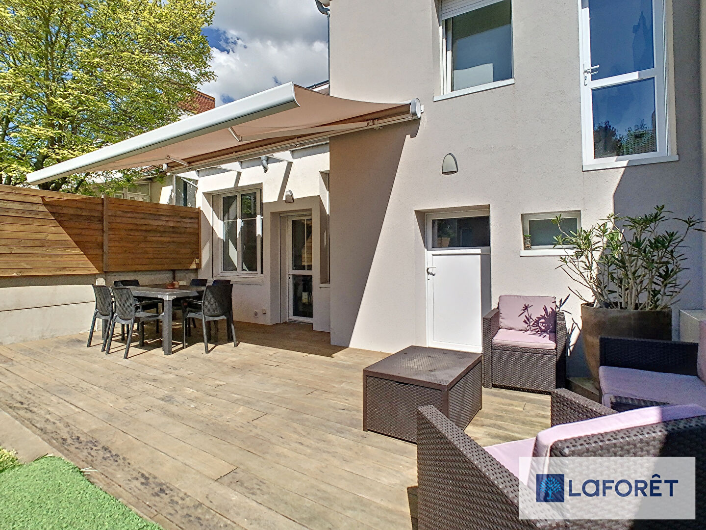 Côté extérieur, une terrasse orientée sud-ouest avec espace salon de jardin et coin à manger exposé plein sud. Un jardin avec dépendance et un garage de rangement complète l'ensemble. Stationnement gratuit et facile à proximité.