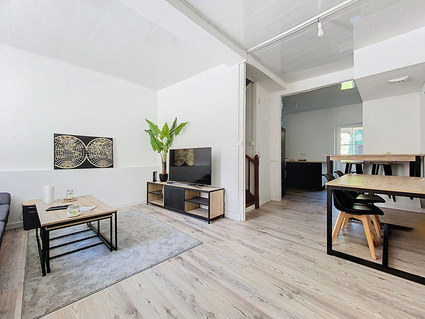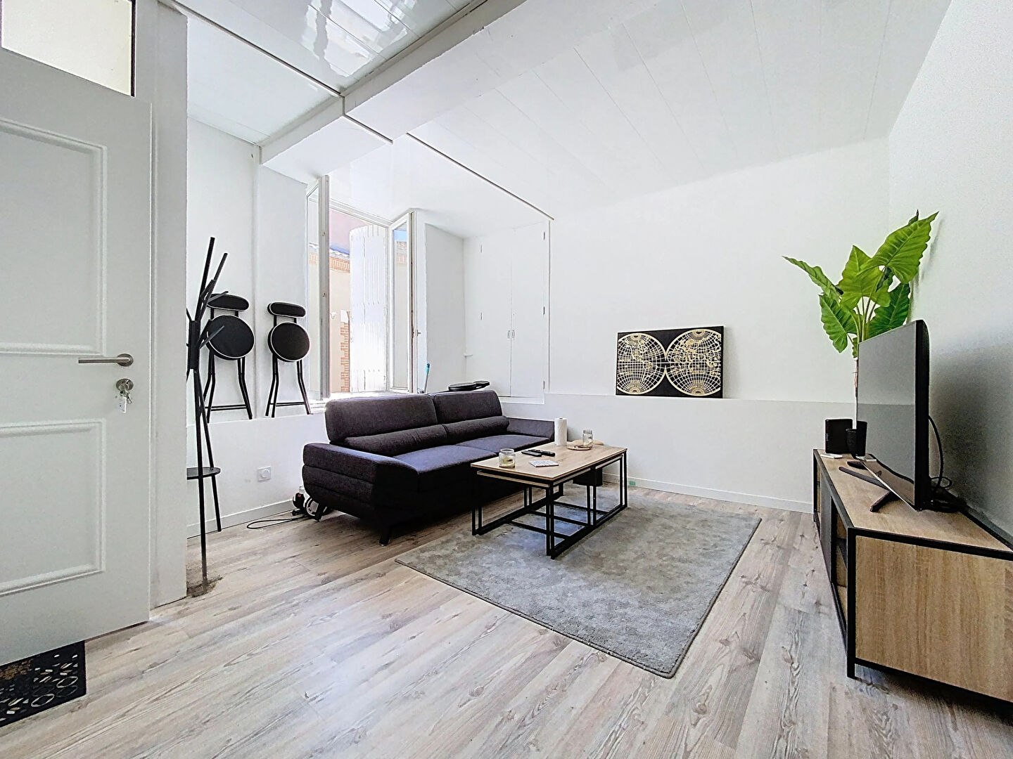 La maison se compose en rez-de-rue d'une pièce de vie lumineuse de plus de 30 m² avec salon/séjour et cuisine équipée donnant sur un extérieur intimiste avec terrasse, un W.C. indépendant.