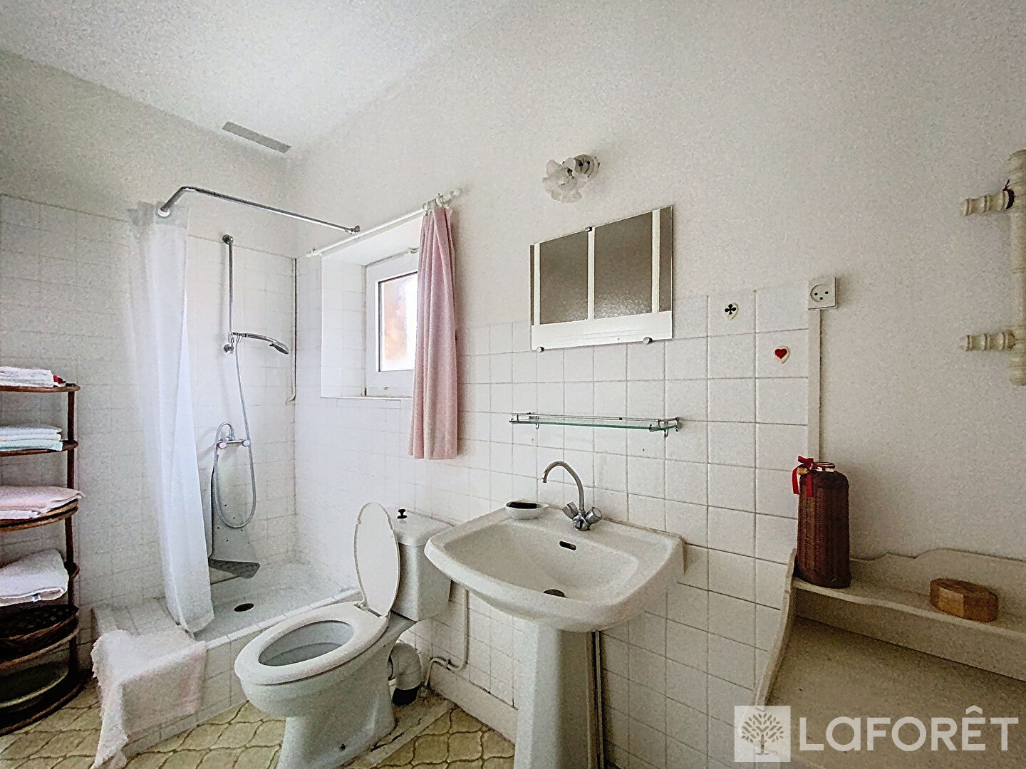 A l'étage, un palier dessert une première grande chambre, une salle de bain avec WC, une chambre palière pouvant faire espace bureau salle de jeu, une seconde chambre avec salle d'eau et WC. Une pièce à aménager au dessus du garage de plus de 20m2.