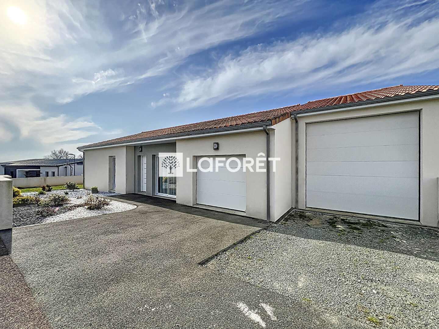 Un garage double, adapté pour accueillir un camping-car, offre à la fois confort et praticité pour le stationnement et le rangement.