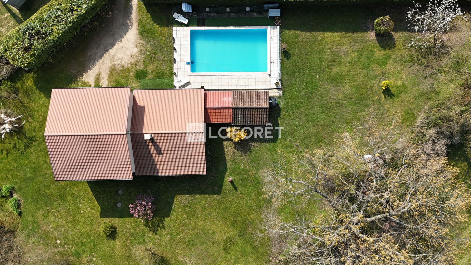 Le tout implanté sur une belle parcelle arborée et sans vis à vis d'environ 2 235 m².