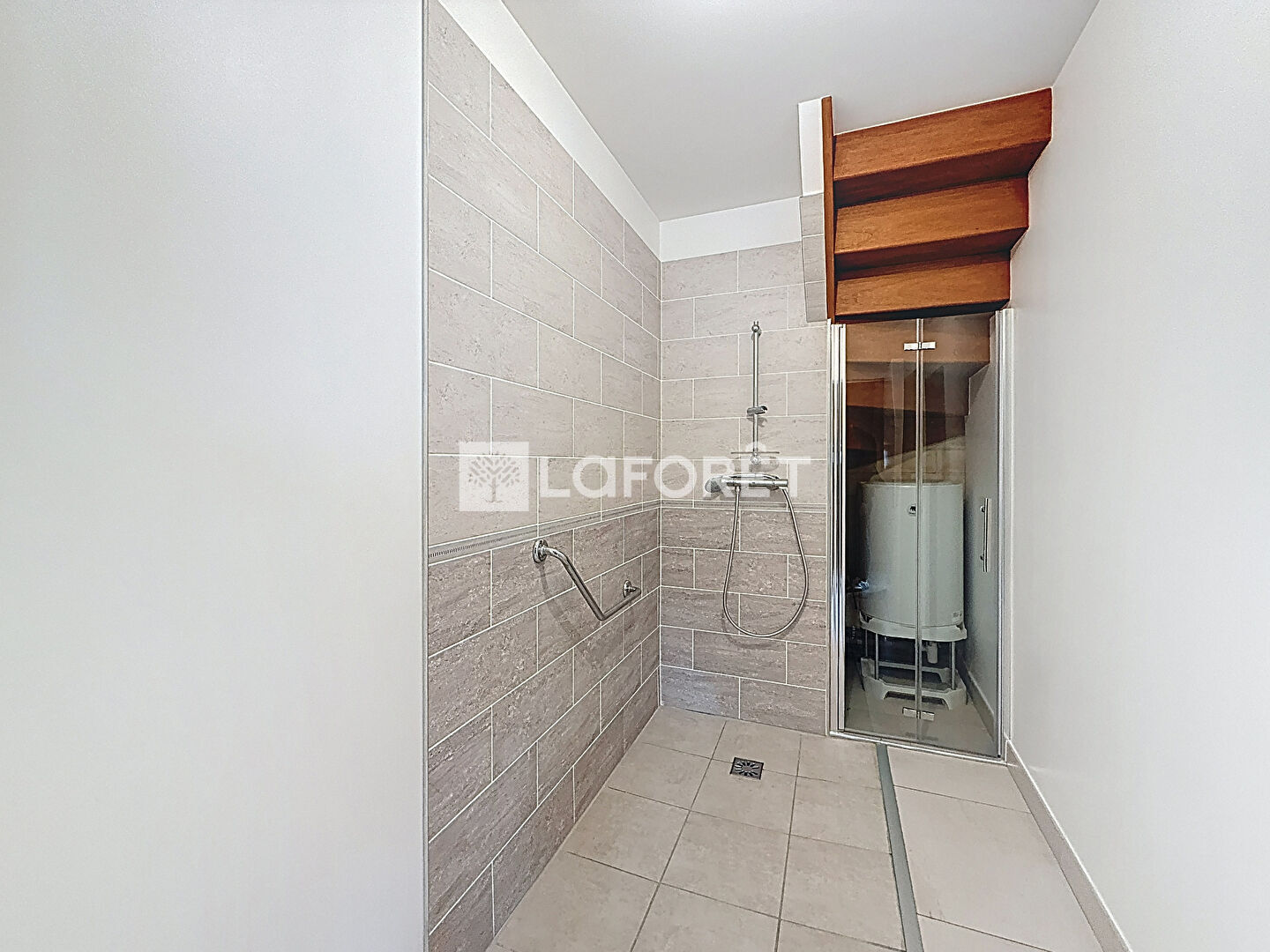 Au rez-de-chaussée, vous trouverez une pièce de vie lumineuse avec climatisation réversible, une cuisine indépendante, une salle de douche, un espace bureau ainsi qu'une seconde salle d'eau avec WC.