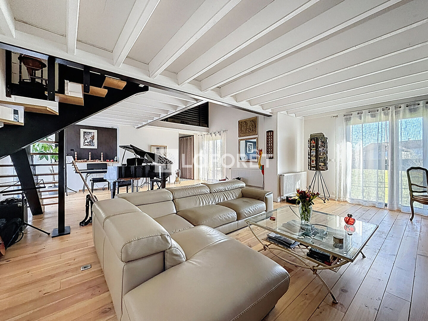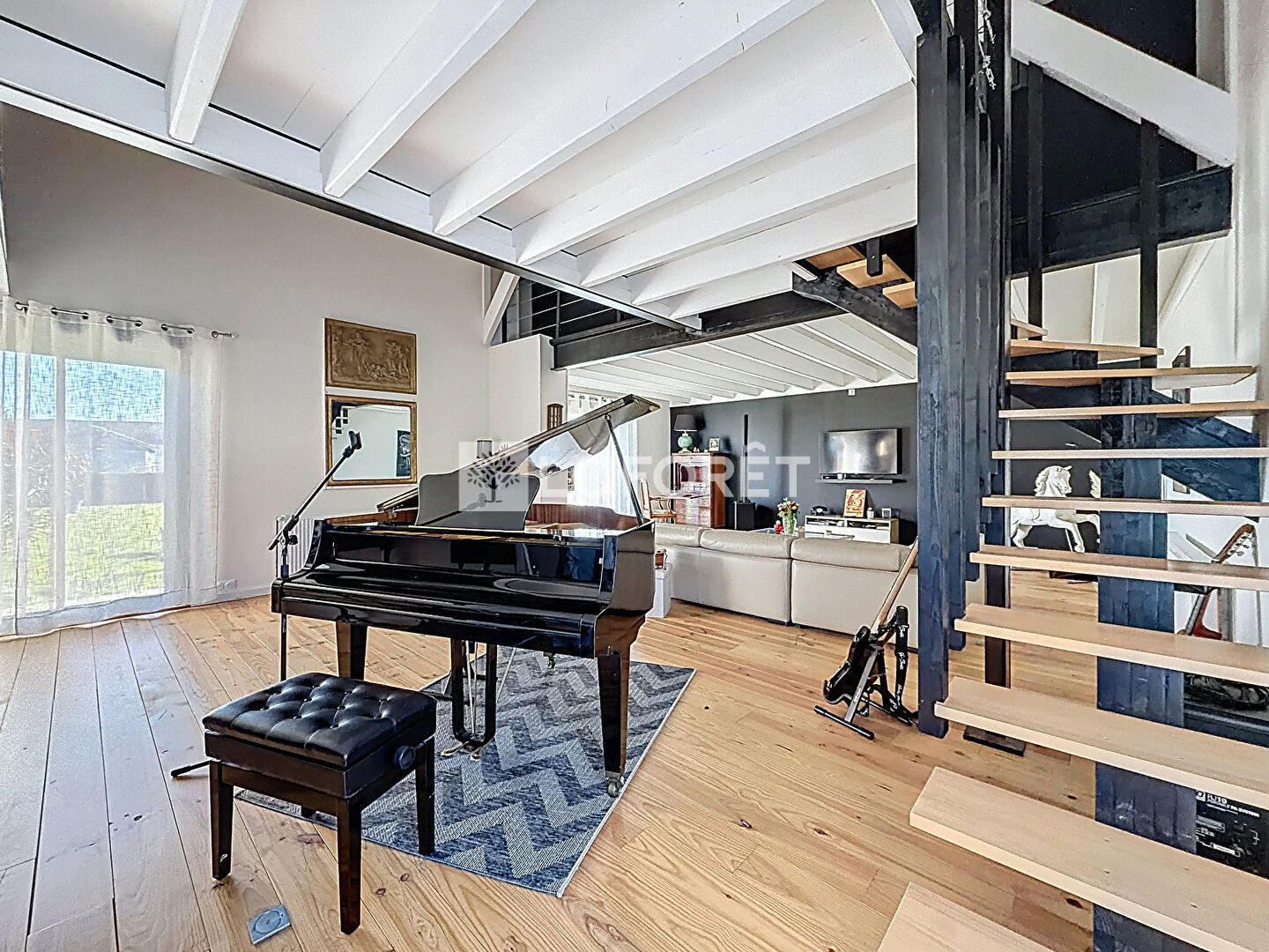 Un second escalier mène à un agréable espace mezzanine, ainsi qu'à deux pièces actuellement aménagées en bureaux, pouvant facilement être transformées en chambres supplémentaires avec l'installation de vélux.