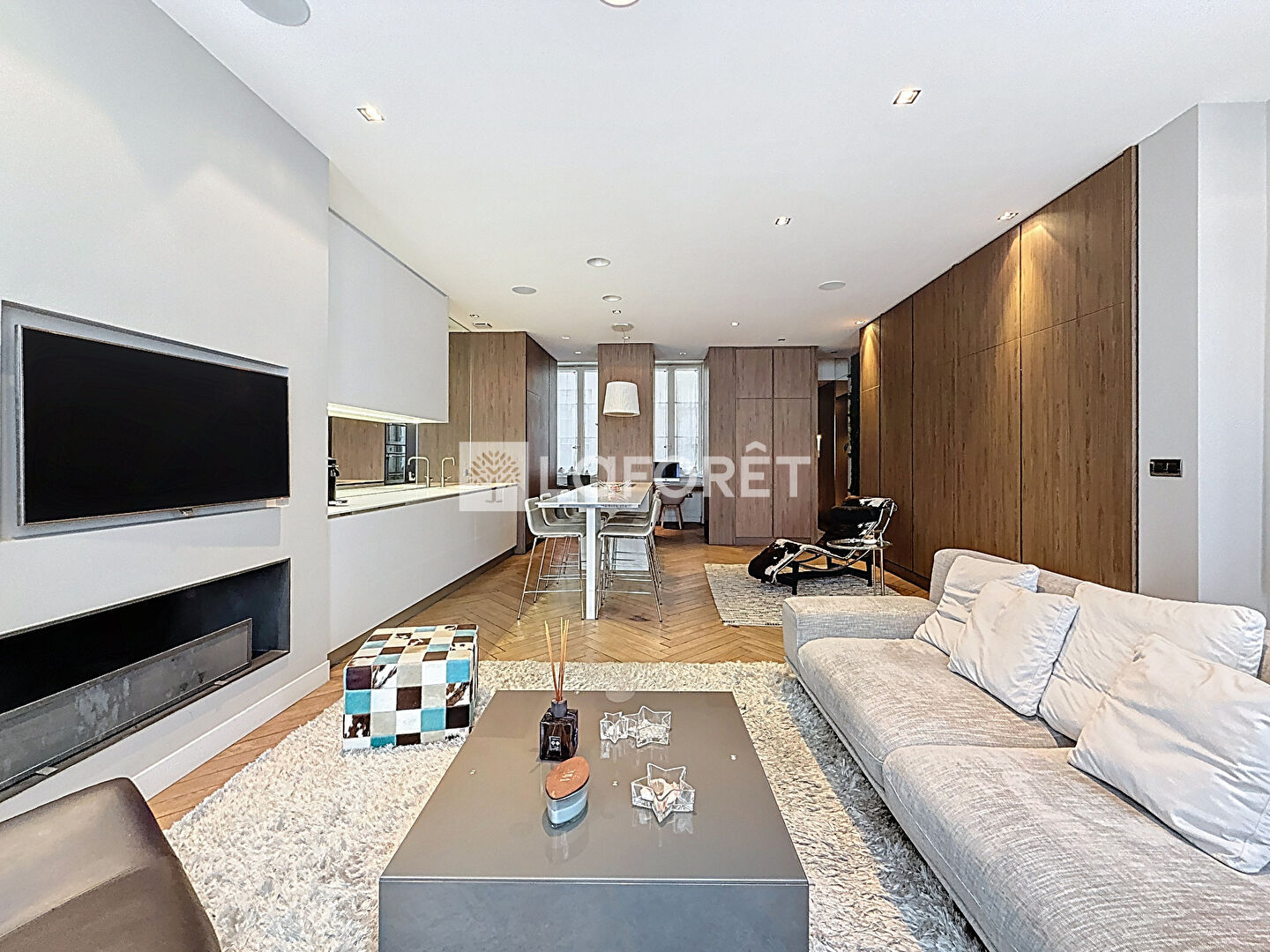 Nichée au 2ème étage d'un bel immeuble de type haussmannien avec ascenseur, cette adresse d'exception a bénéficié d'une rénovation haut de gamme réalisée en 2014 par un architecte de renom. Ce dernier a su créer une atmosphère chaleureuse, élégante et contemporaine, où chaque détail a été pensé avec goût et exigence.