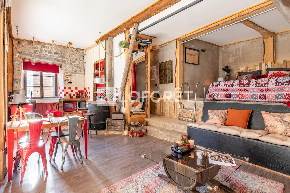 Enfin, le dernier logement est un studio d'environ 45 m² aménagé dans l'ancien cuvage, lui conférant un charme exceptionnel. Il dispose d'une pièce de vie avec cuisine aménagée, d'une salle d'eau et d'un coin nuit, le tout entièrement climatisé.