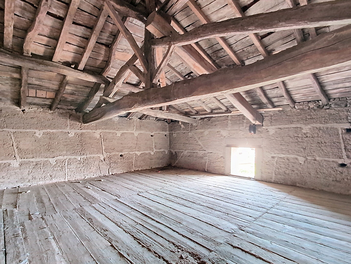 Elle se compose de 2 grandes chambres au rez de chaussée et d'un grenier aménageable à l'étage supérieur avec en sous sol une cave voutée de 100m².
