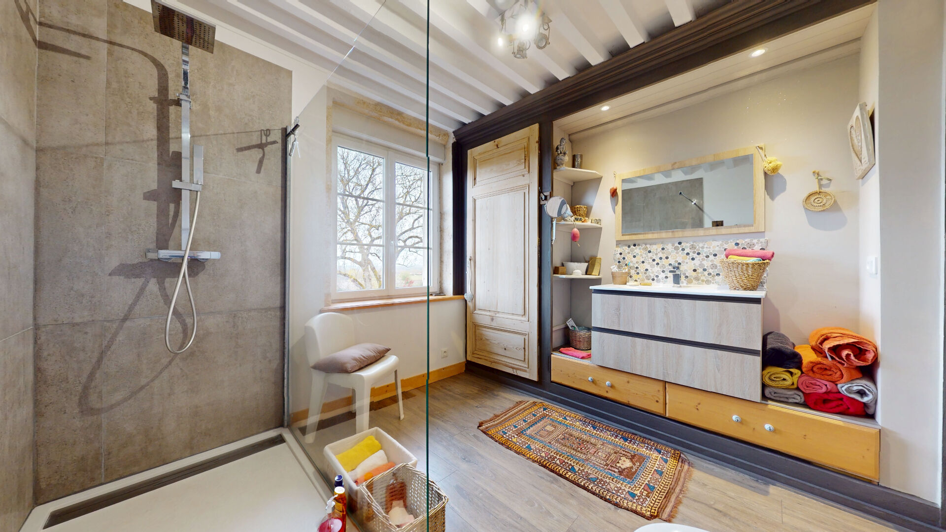 La maison accueille une suite parentale avec salle de bains et dressing ainsi que trois chambres lumineuses, complétées d'une salle d'eau spacieuse et indépendante, offrant un confort appréciable au quotidien.