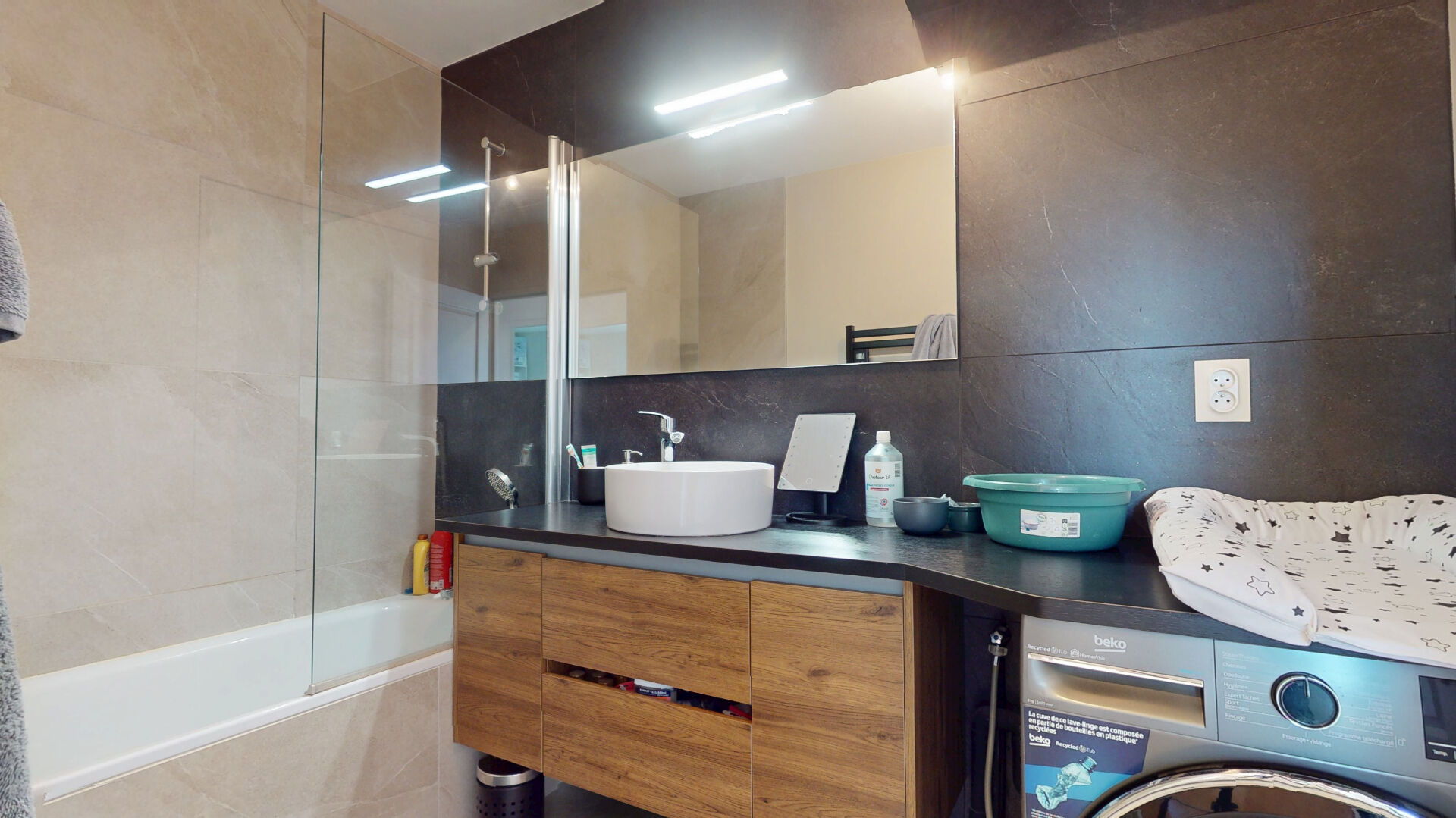 L'espace nuit quant à lui se compose de trois chambres confortables, dont deux sont dotées de rangements intégrés, W.C individuels et une salle de bain à l'ambiance élégante, récemment rénovée et comportant baignoire, meuble vasque, sèche serviette et un coin buanderie parfaitement aménagé.