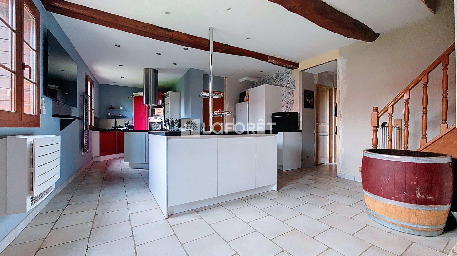 Elle se compose d'une très grande pièce de vie avec cuisine ouverte et équipée, dotée d'un îlot central idéal pour des moments de convivialité.