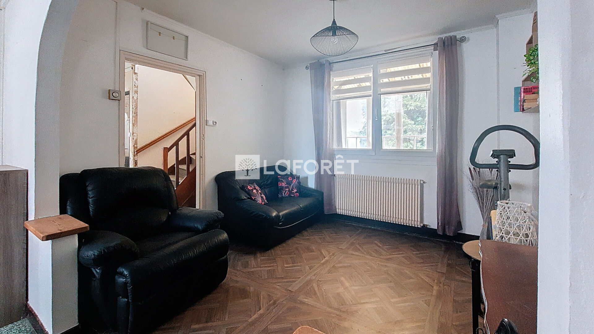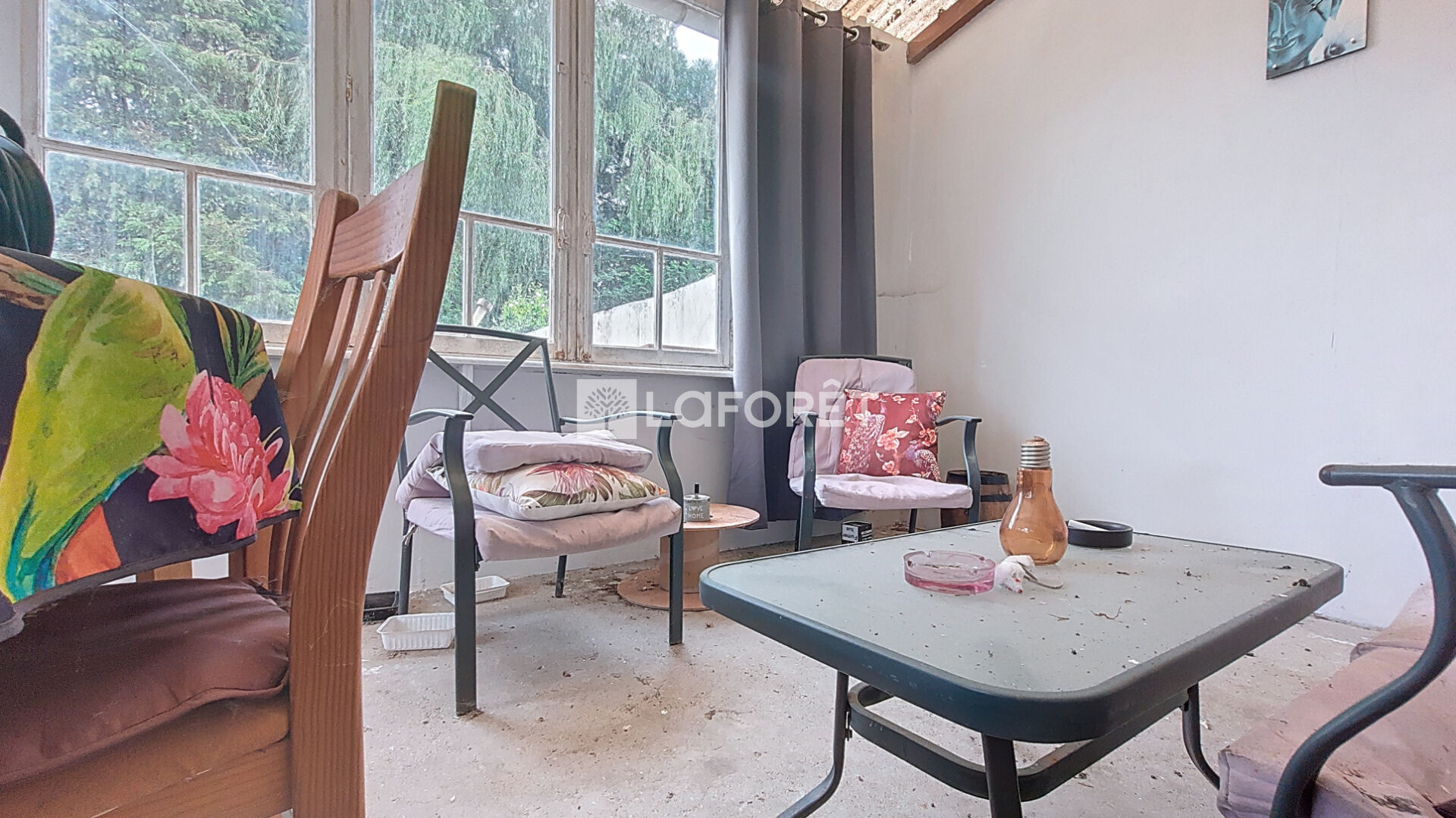 Les fenêtres sont en PVC avec volets roulants. Des travaux sont à prévoir (chaudière gaz HS, isolation des combles)