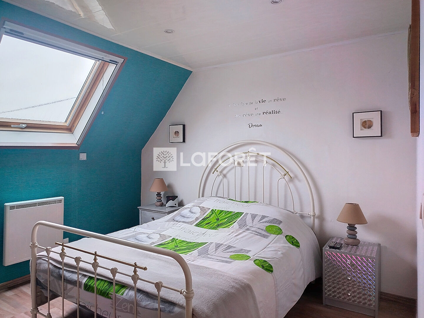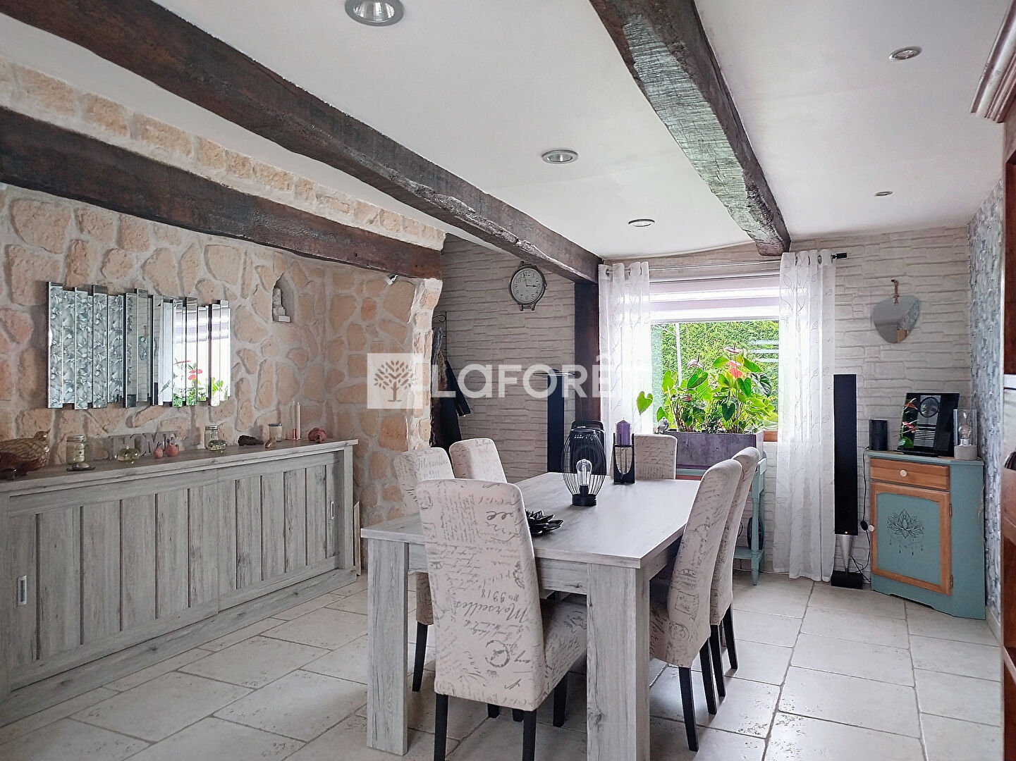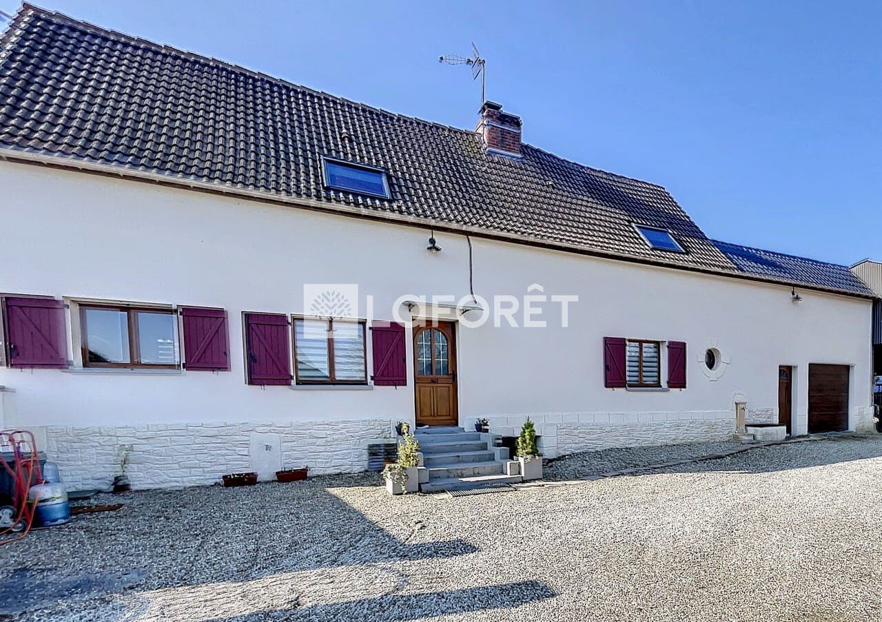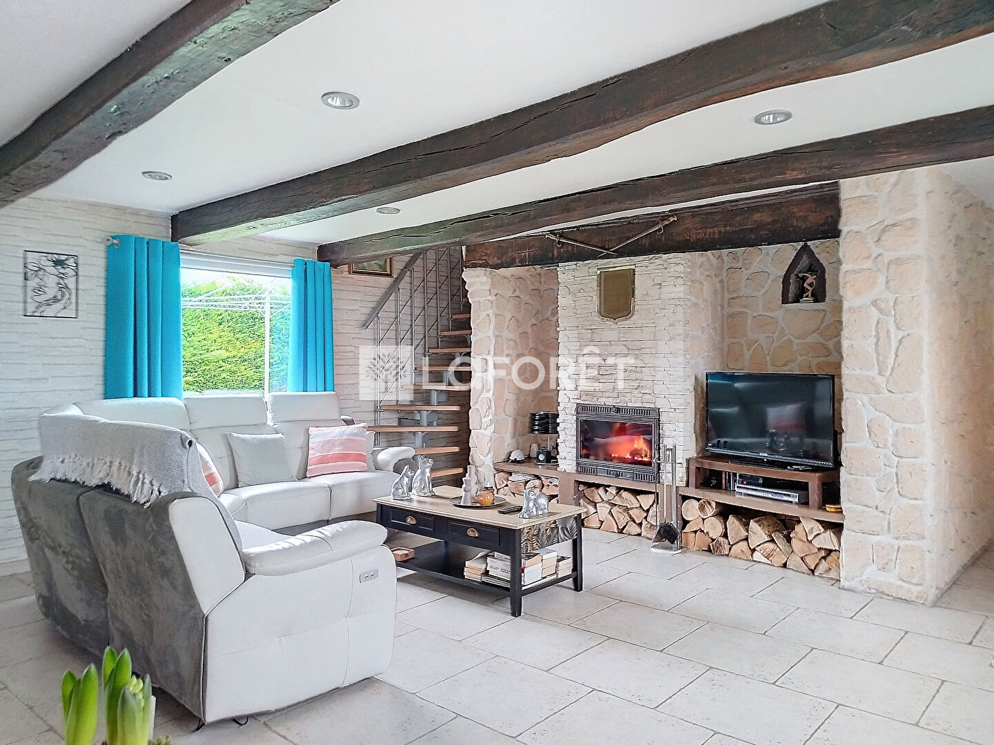 On pose ses meubles dans cette ancienne ferme rénovée avec goût, offrant une vaste pièce de vie et sa cheminée picarde donnant sur la cuisine ouverte, une salle à manger