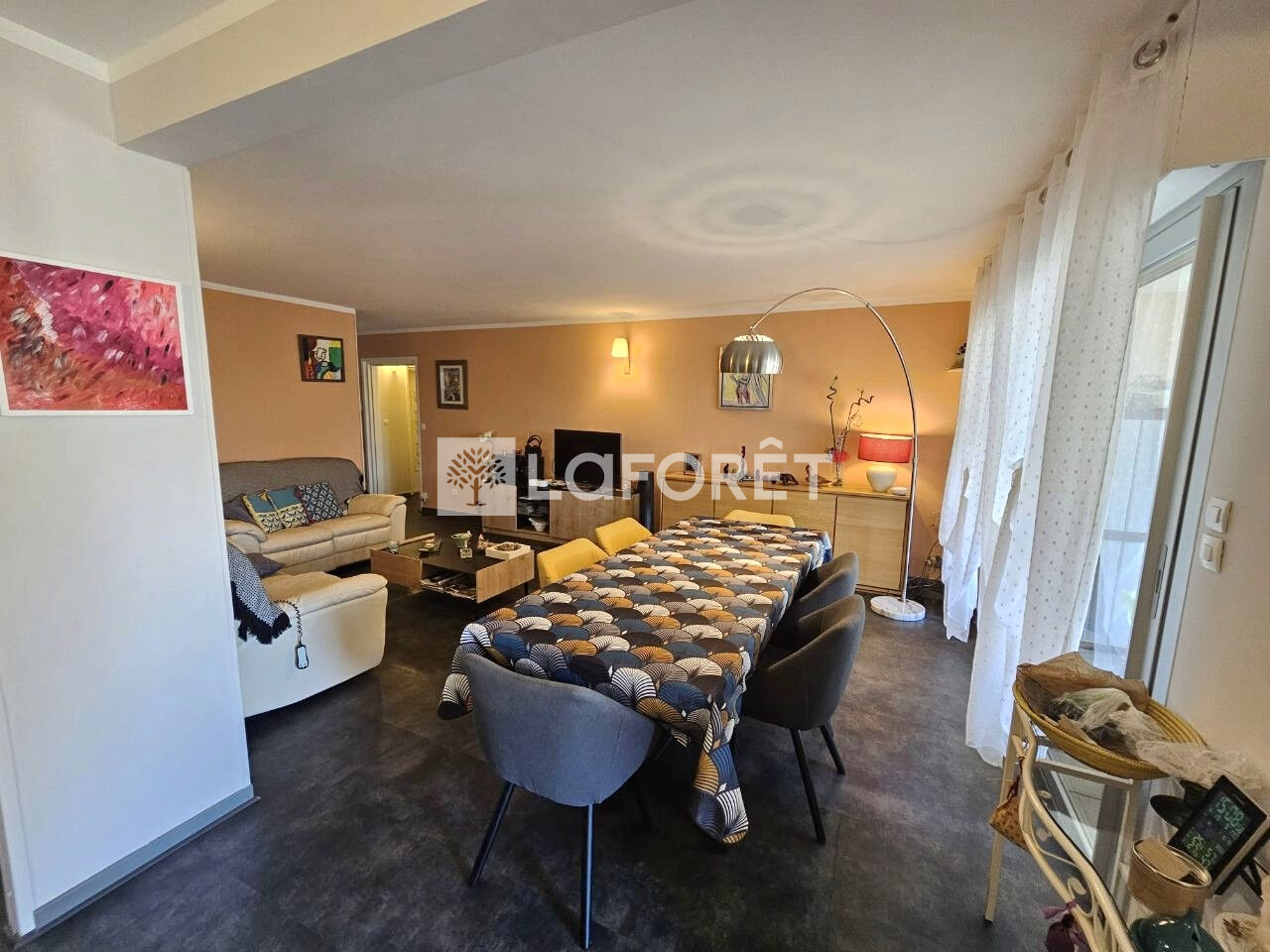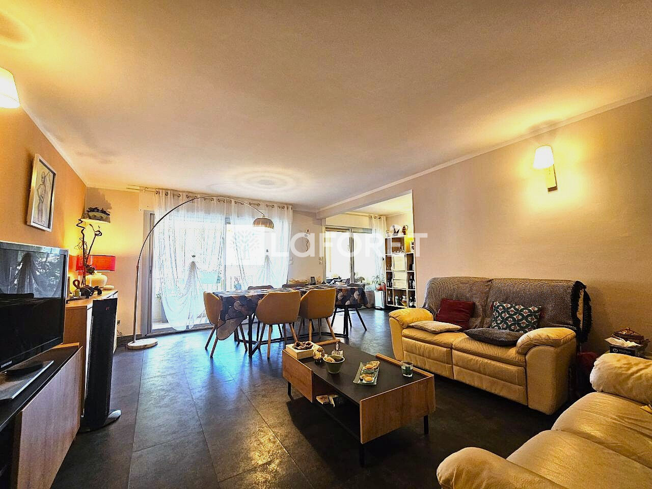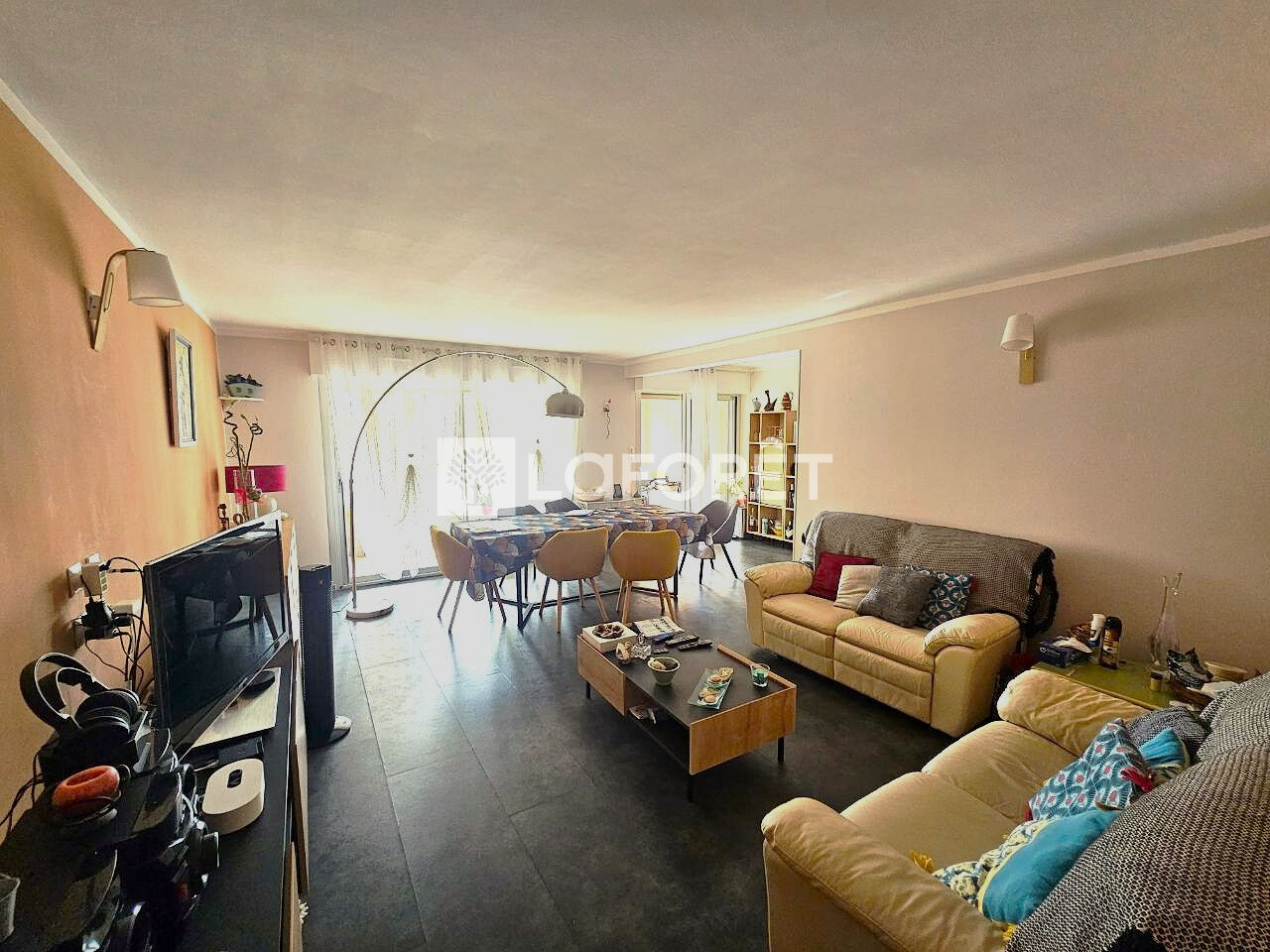 La cuisine est ouverte sur un grand séjour -salon convivial.