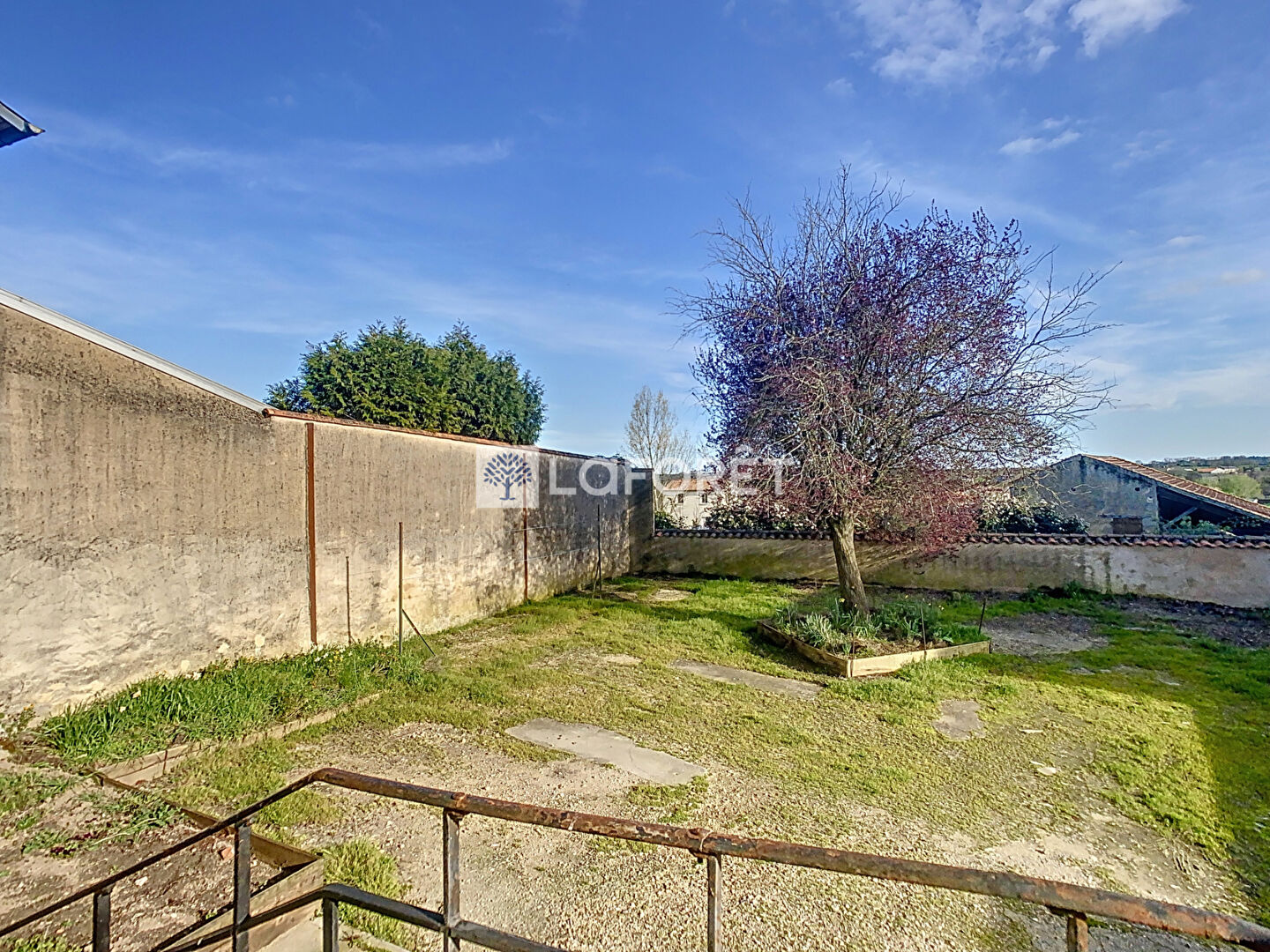 A l'arrière une cour permet le stationnement , un espace a vivre et du jardinage .