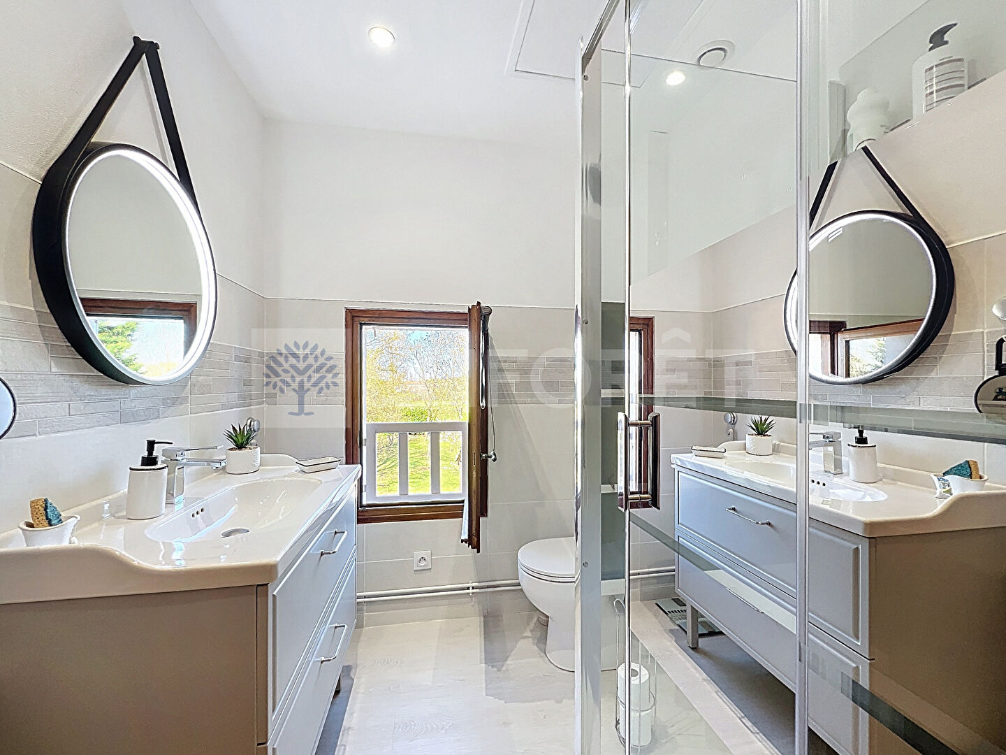 À l'étage, un palier desservant deux belles chambres qui profitent d'une vue sur le jardin et une salle d'eau moderne.