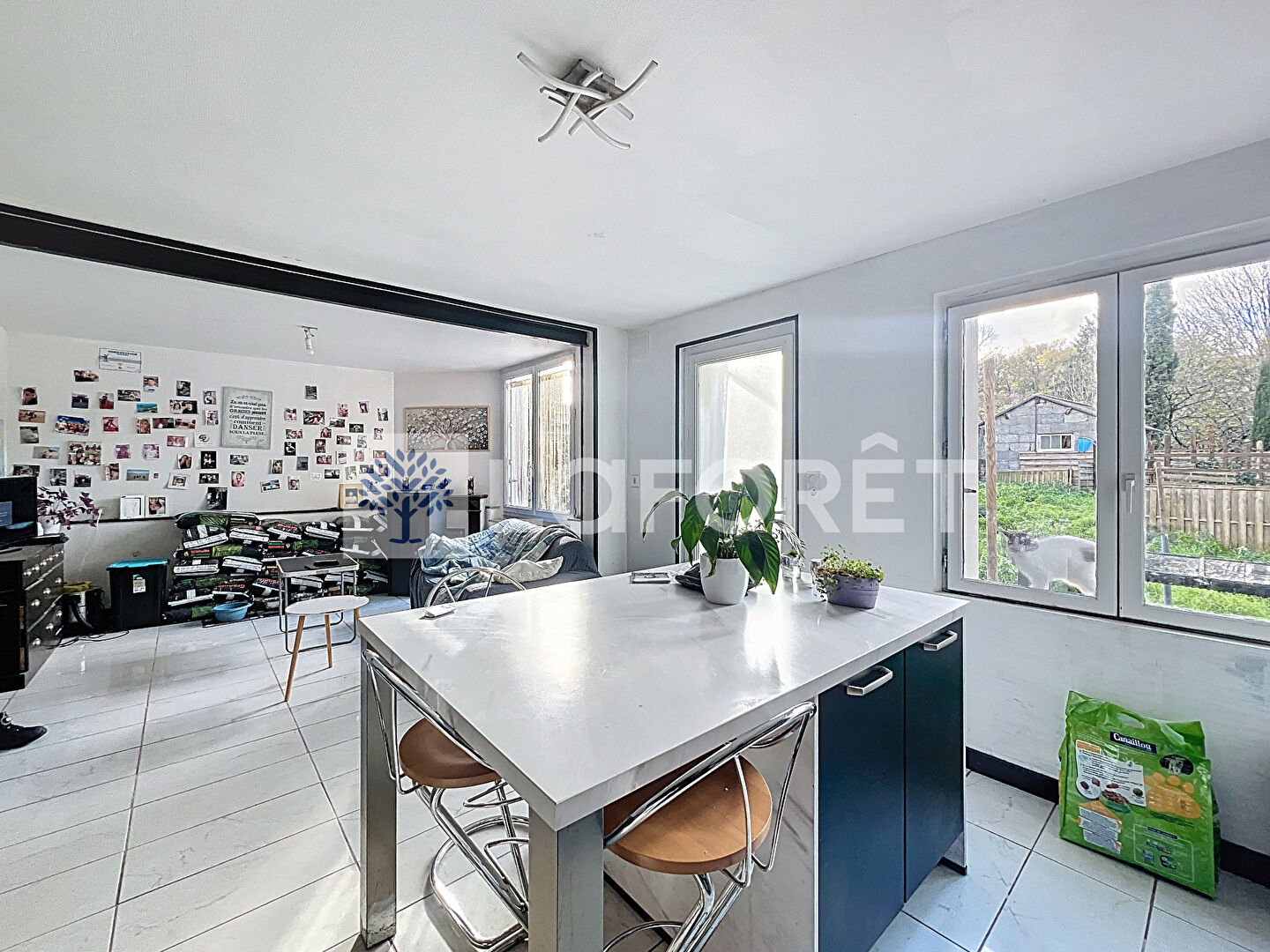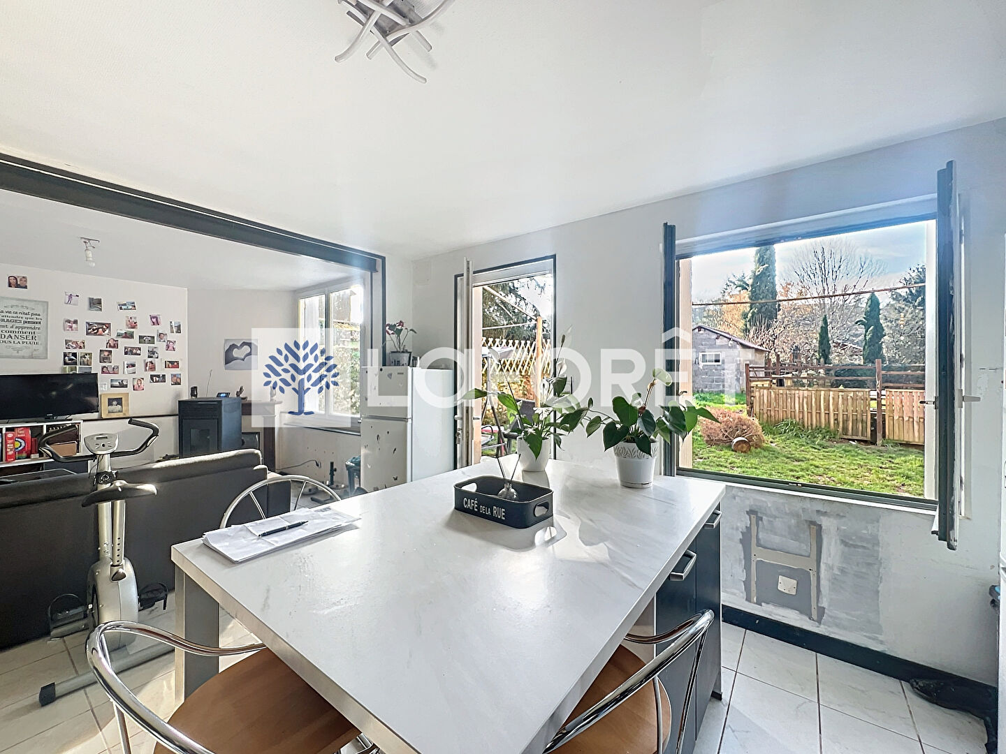 Au rez-de-chaussée un séjour lumineux ainsi qu'une cuisine aménagée et équipée ouverte sur un salon, agrémenté d'un poêle à granulés et offrant une agréable vue sur le jardin.
