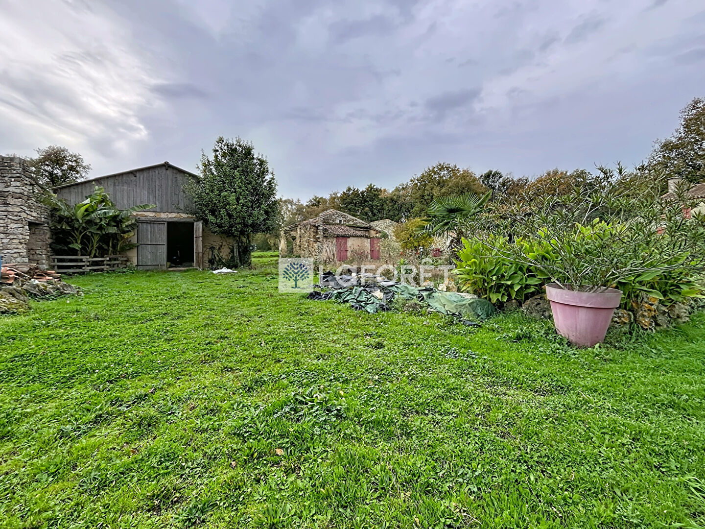 Le tout sur un terrain floral et arboré de 16600m2 qui met à votre disposition une marre, un puits, un petit bois, divers petits toits, un garage/atelier de 69m2.