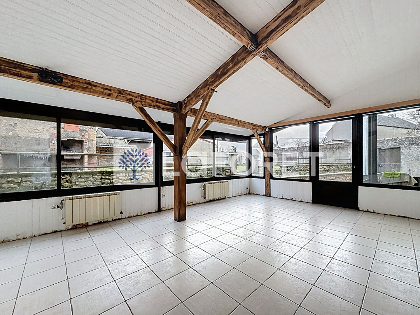 Au rez-de-chaussée : une entrée sur un séjour avec poêle à bois, une cuisine aménagée et équipée ouverte, un grand salon / véranda lumineux, une salle d'eau avec double vasque, une buanderie et un wc séparé.