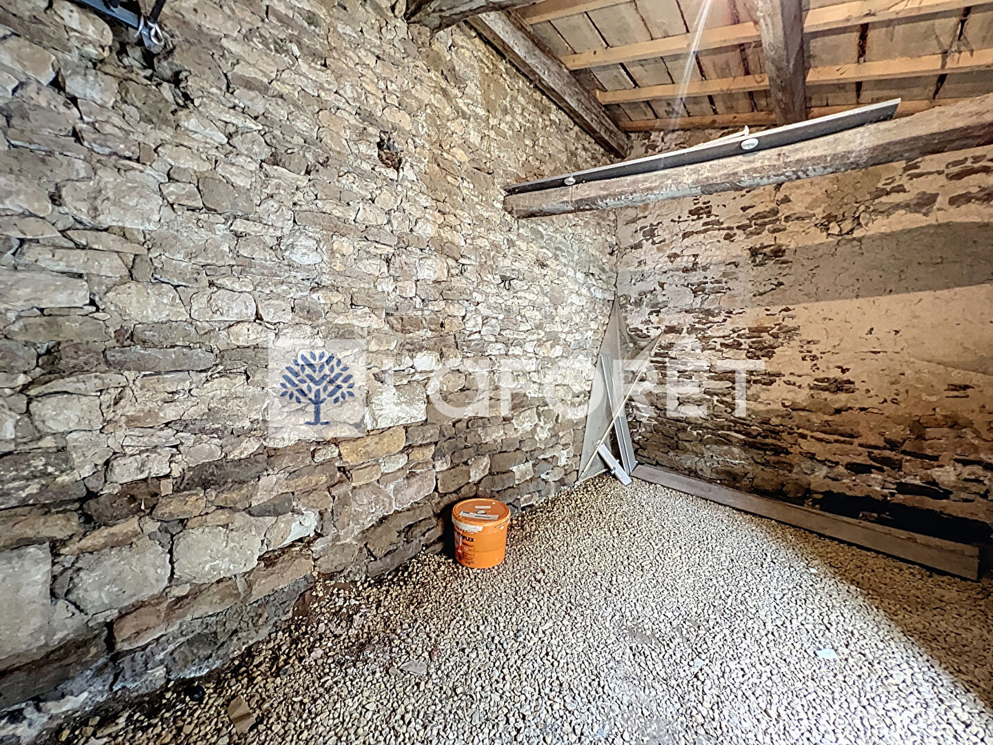À l'étage, un palier dessert une chambre de 18 m² offrant un accès extérieur par un escalier en pierre du XIIe siècle.
