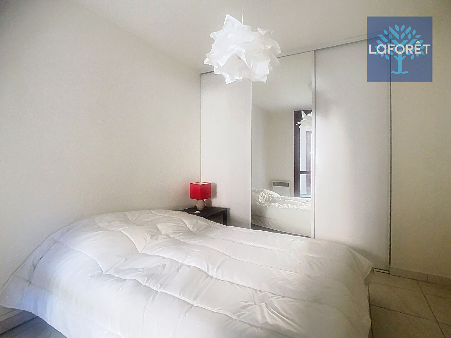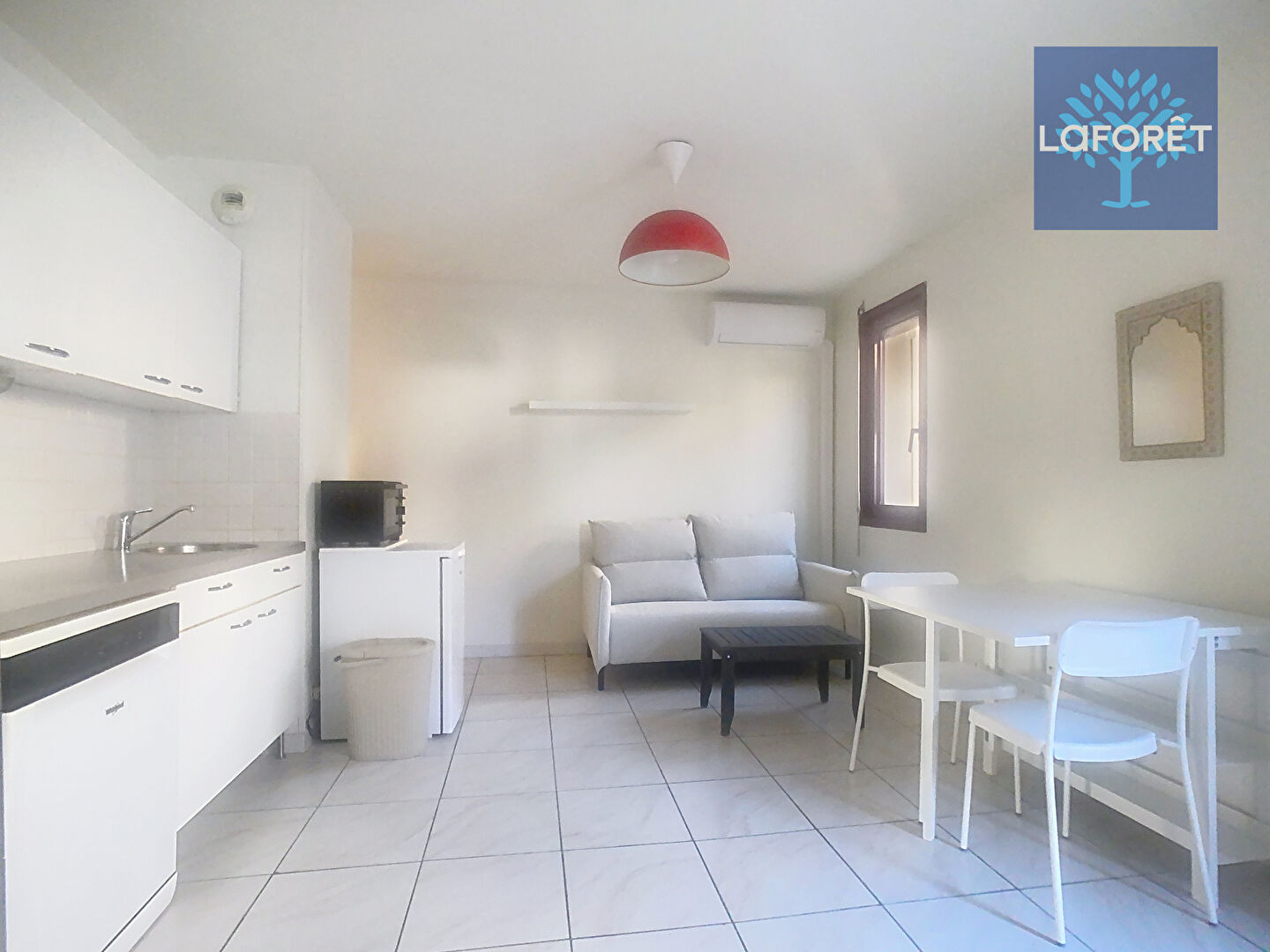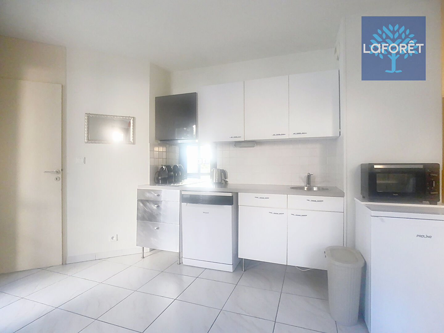Ce bien dispose d'un séjour avec espace cuisine aménagée et équipée (plaque de cuisson + hotte, réfrigérateur, four, lave vaisselle) une chambre avec placards intégrés et une salle de bains avec WC (machine à linge).