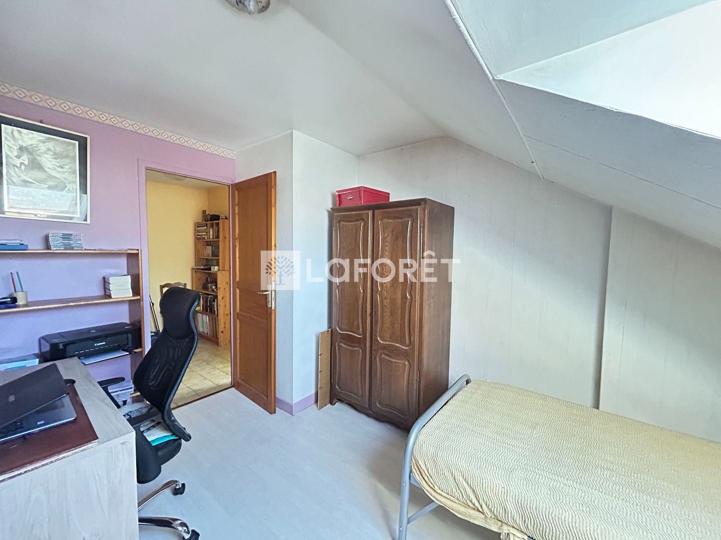 À l'étage, vous trouverez trois chambres, une salle de bains avec WC ainsi qu'une pièce supplémentaire idéale pour un bureau ou une chambre d'appoint. Un grenier complète l'ensemble.