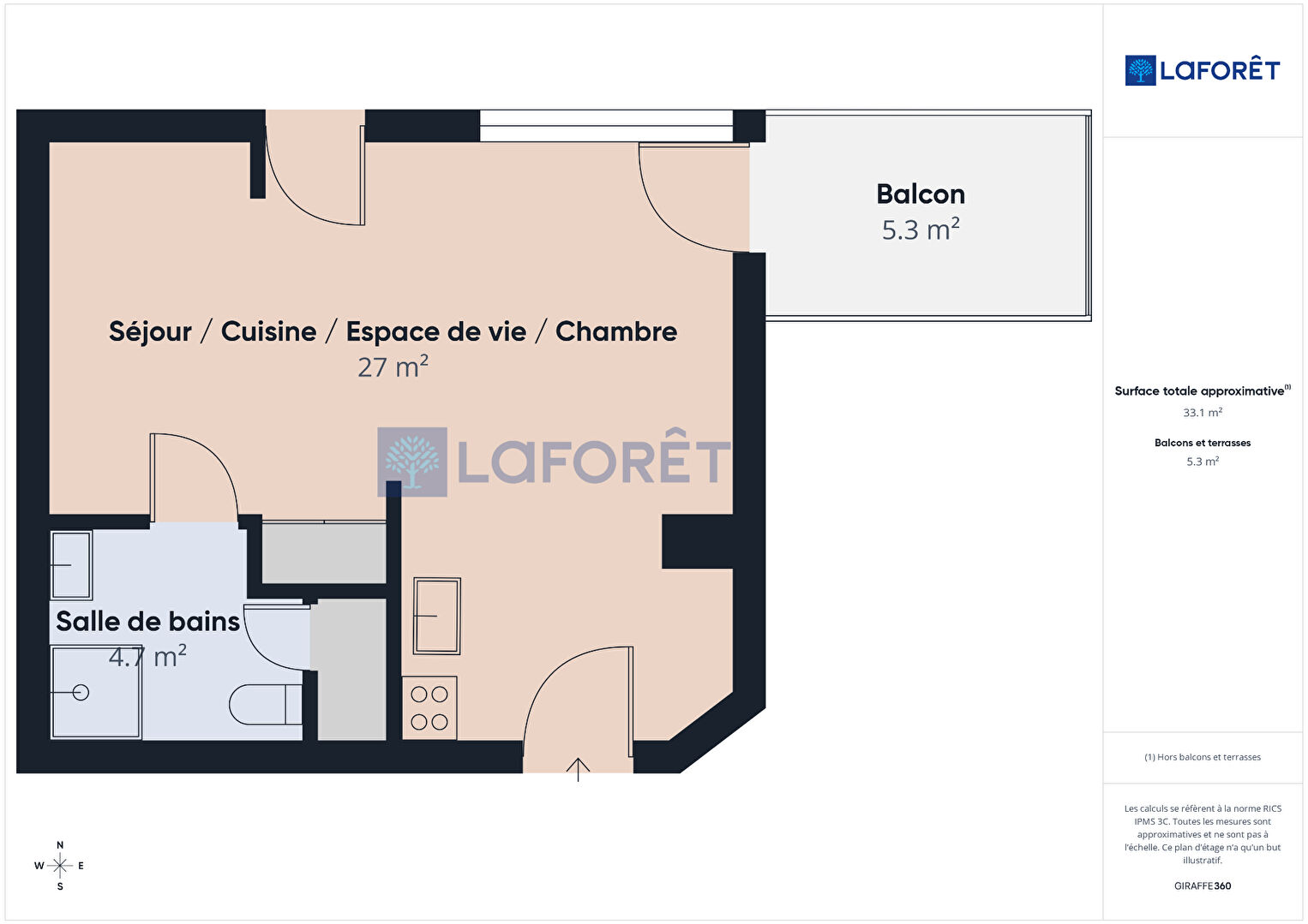 Situé au 3ème étage sur 5, cet appartement d'environ 33 m² bénéficie d'un agencement particulièrement optimisé.