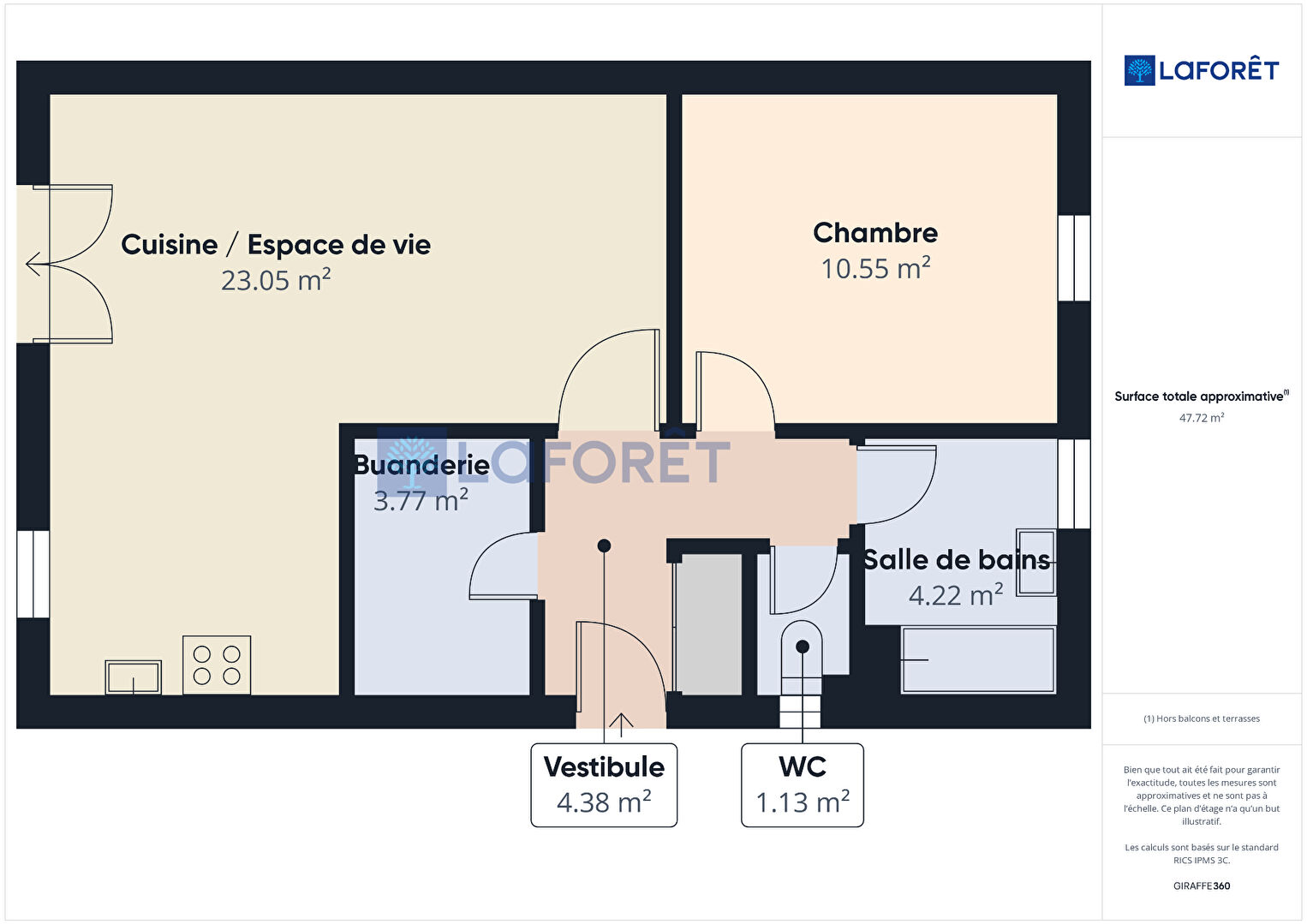 48 m² • 2 pièces • 1 chambre