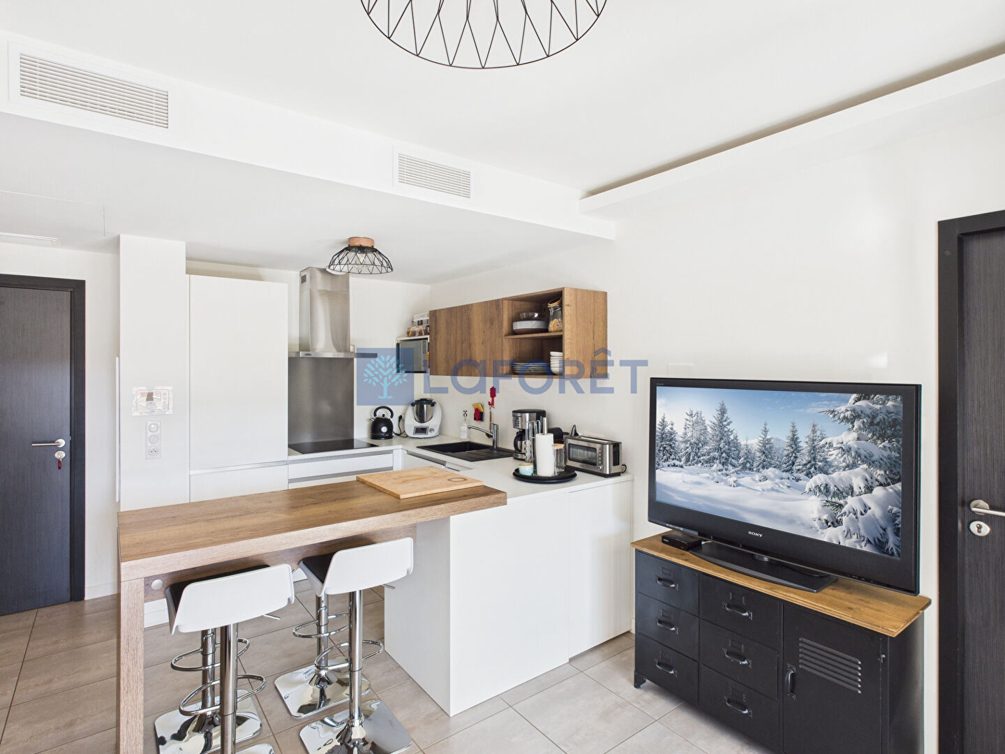 L'appartement se compose d'une cuisine équipée ouverte sur un séjour lumineux, d'une chambre de plus de 12 m² avec placard, et d'une salle d'eau moderne avec WC suspendu.