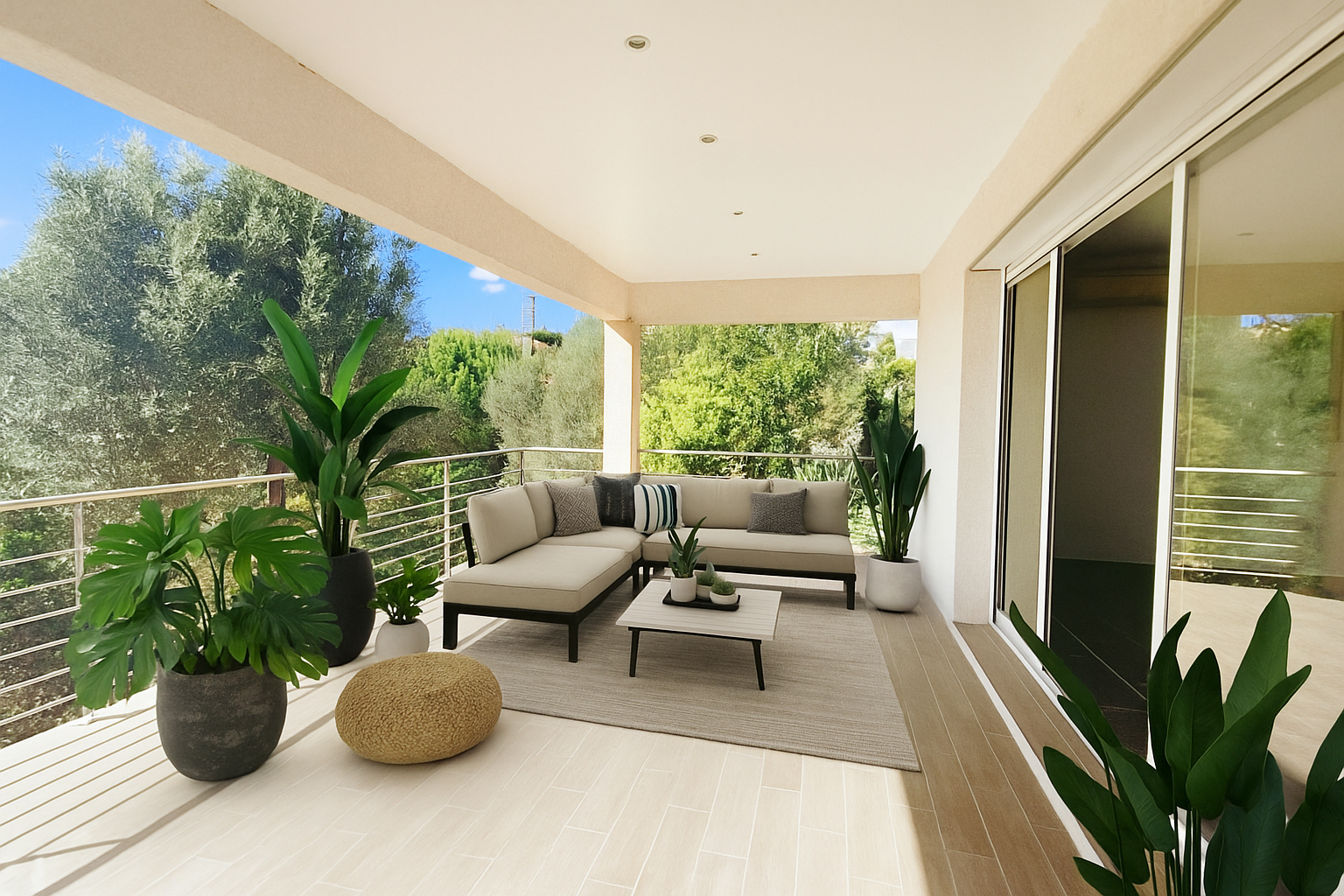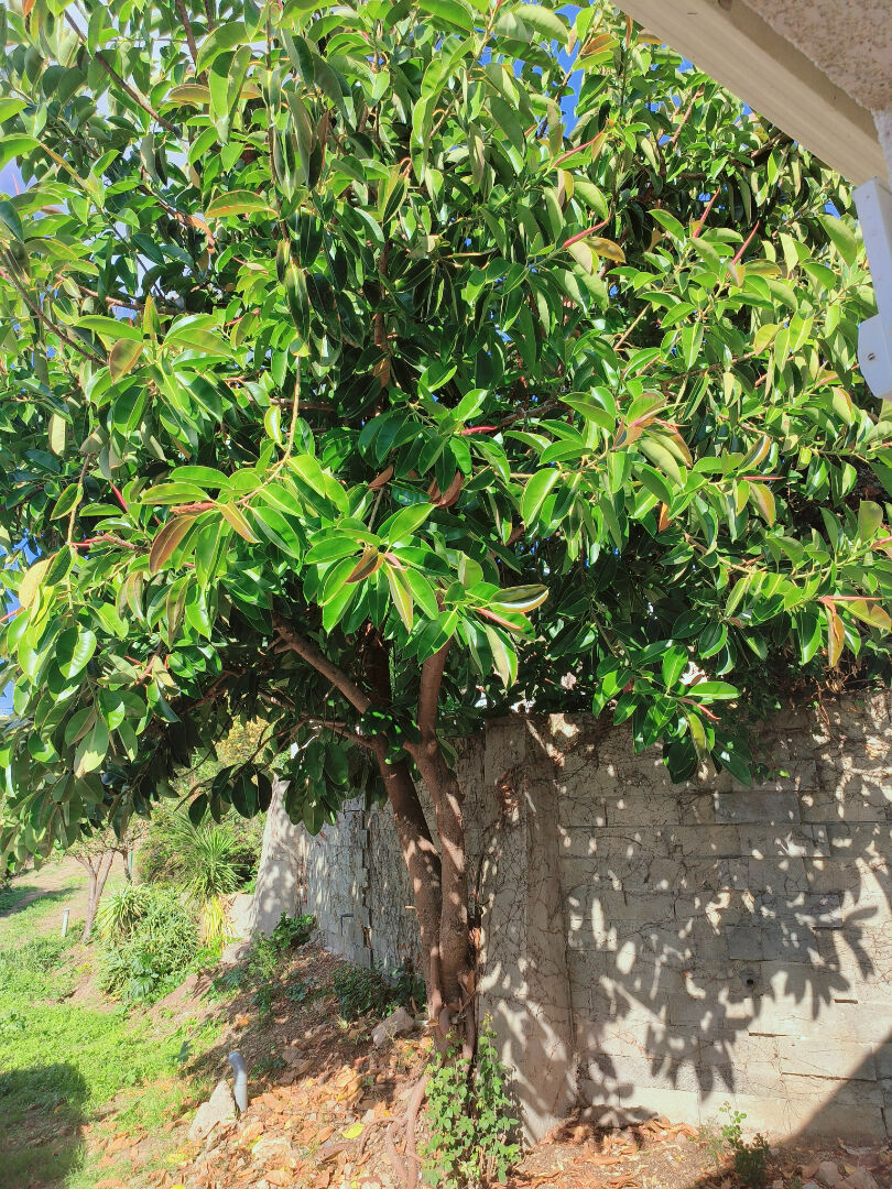 Terrain clos et arboré de 918 m², avec un aperçu mer.