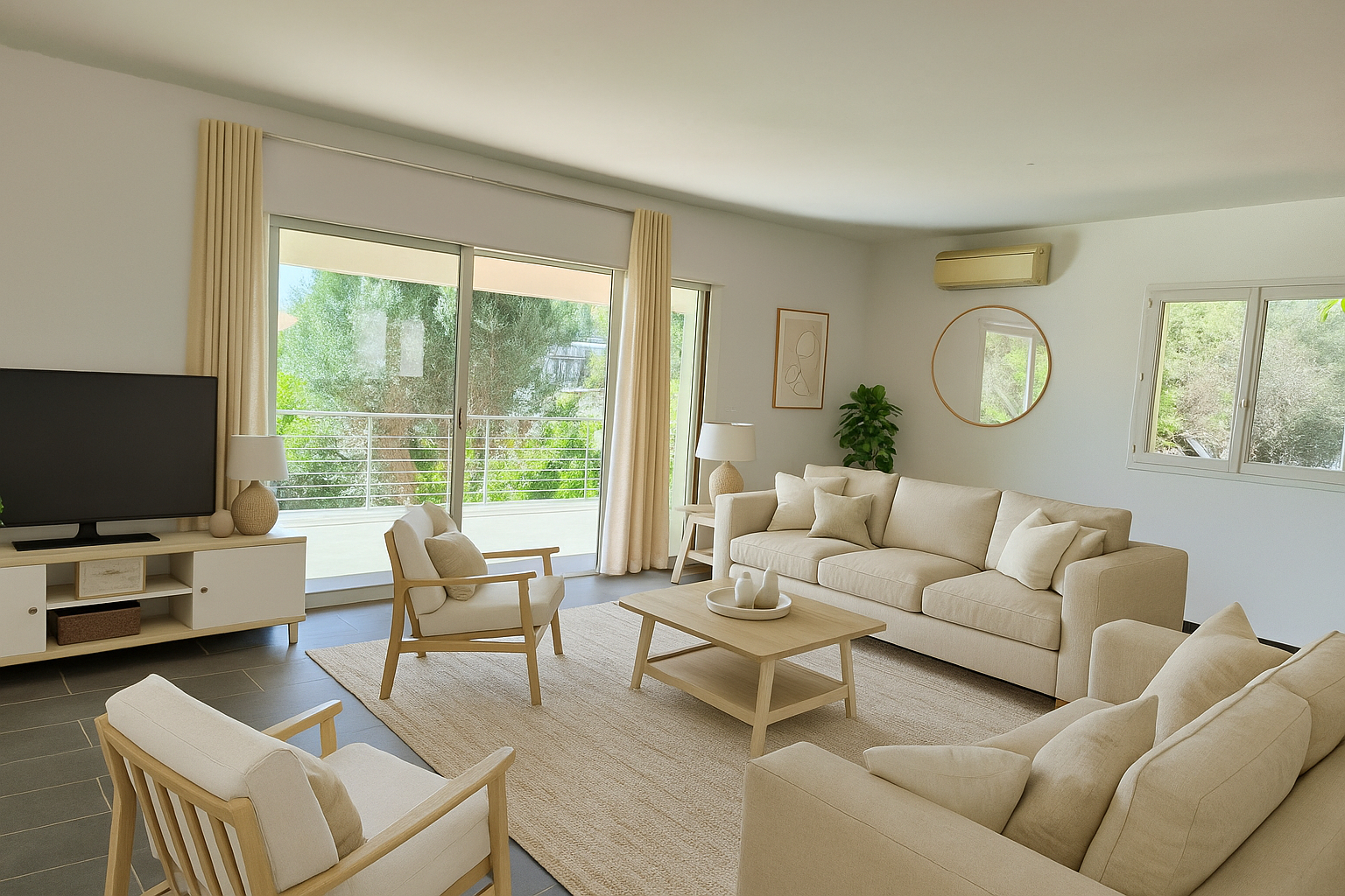 cette charmante maison de 89 m², située sur la plaine de Péri, dans un environnement calme, verdoyant et sans vis-à-vis.