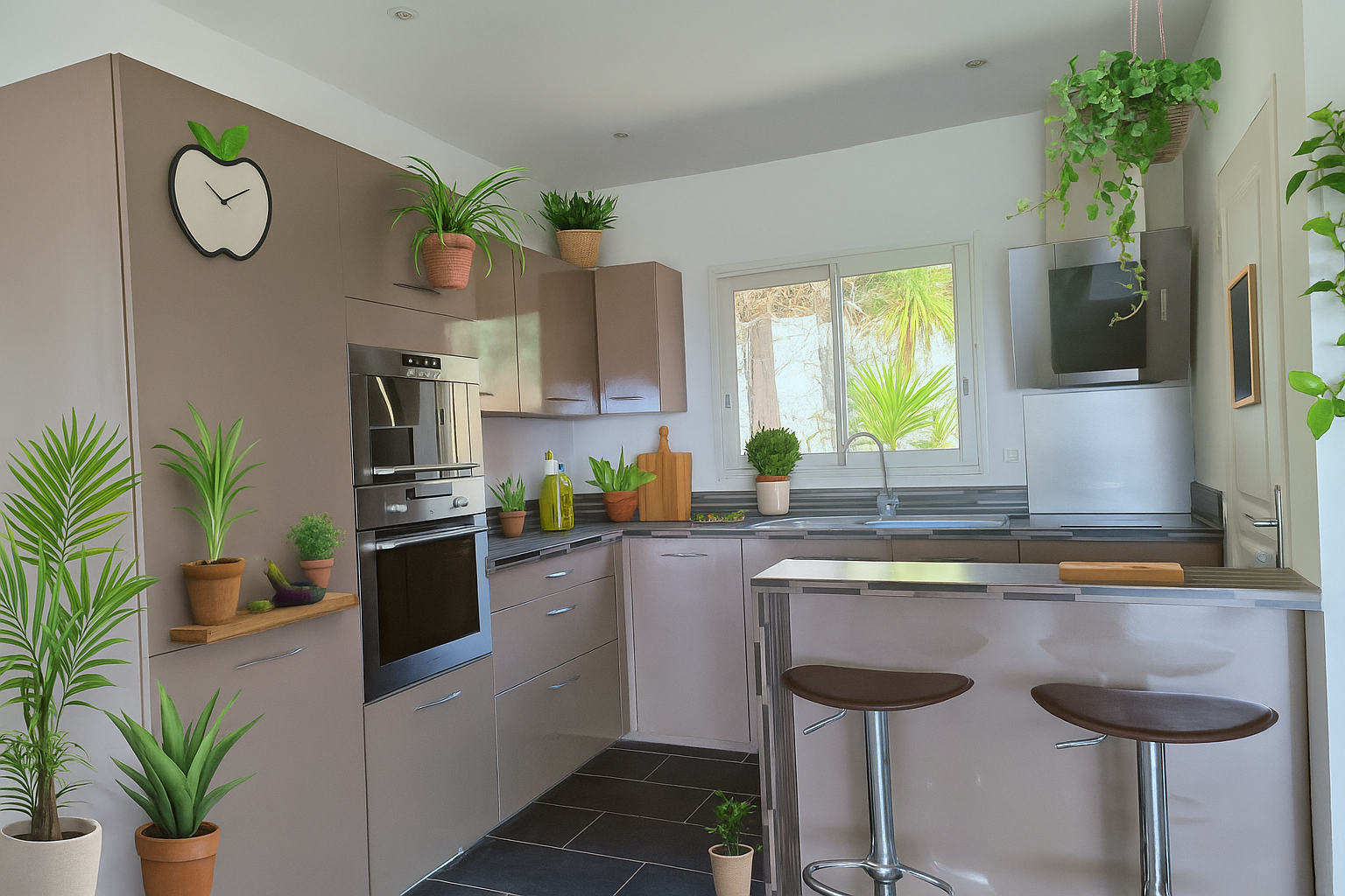 Un espace de vie cocooning comprenant un salon ,salle à manger avec cuisine ouverte équipée,