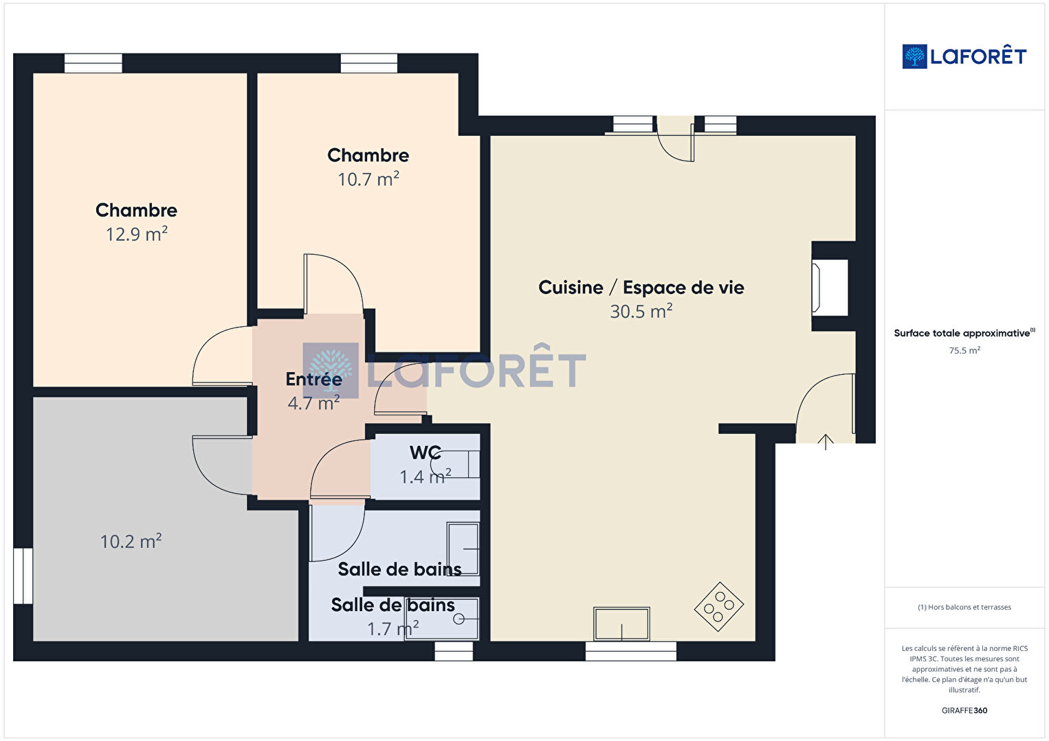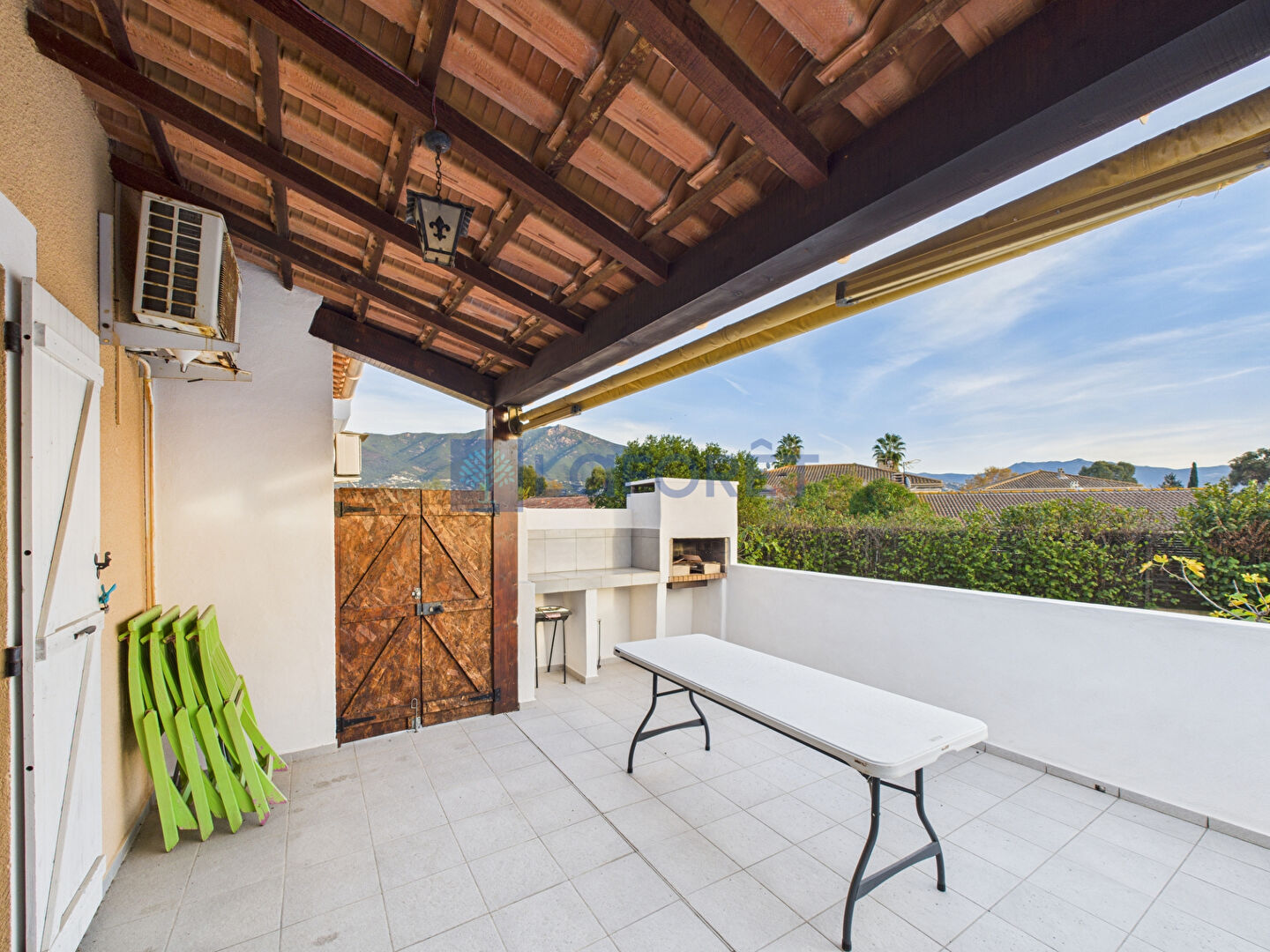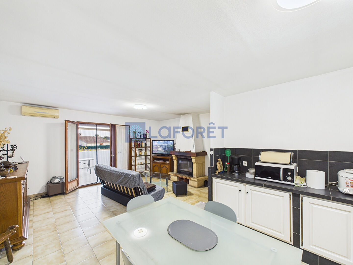 Un salon cuisine avec cheminée et climatisation, 3 chambres dont une climatisé, un wc indépendant et une salle d'eau avec douche italienne.