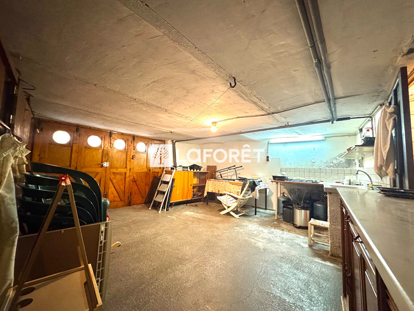 Le sous-sol compte, quant à lui, une chaufferie, une cave vouté et un grand garage de 25 m2.