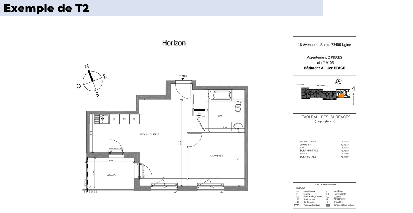 Plusieurs T2 sont disponibles, de 40.15m² à un peu plus de 46m².
