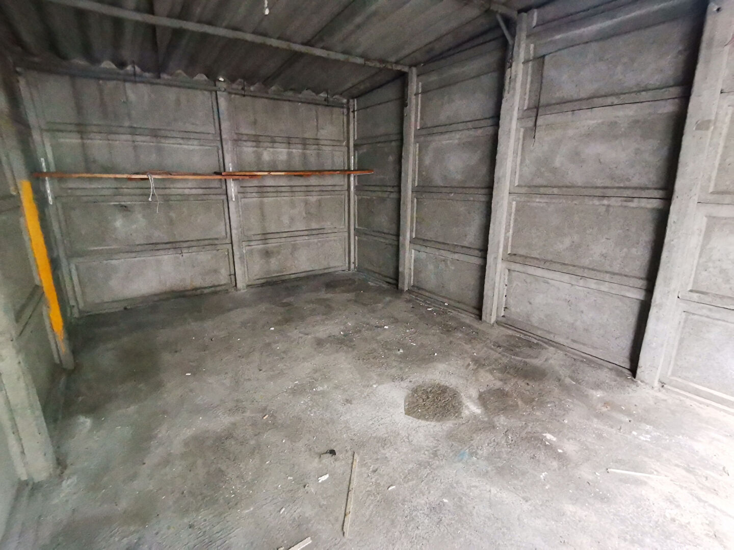 Taille standard de 15 m2; porte en métal coulissante.