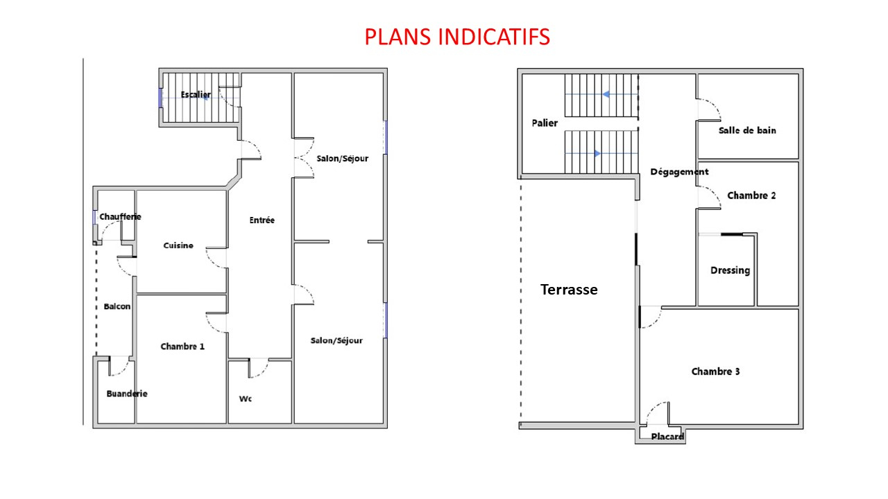 Il comprend, au 1° niveau : une grande pièce de vie de 41 m²*, une chambre de 12 m² * et une cuisine équipée donnant directement sur un balcon, ainsi qu'un wc .