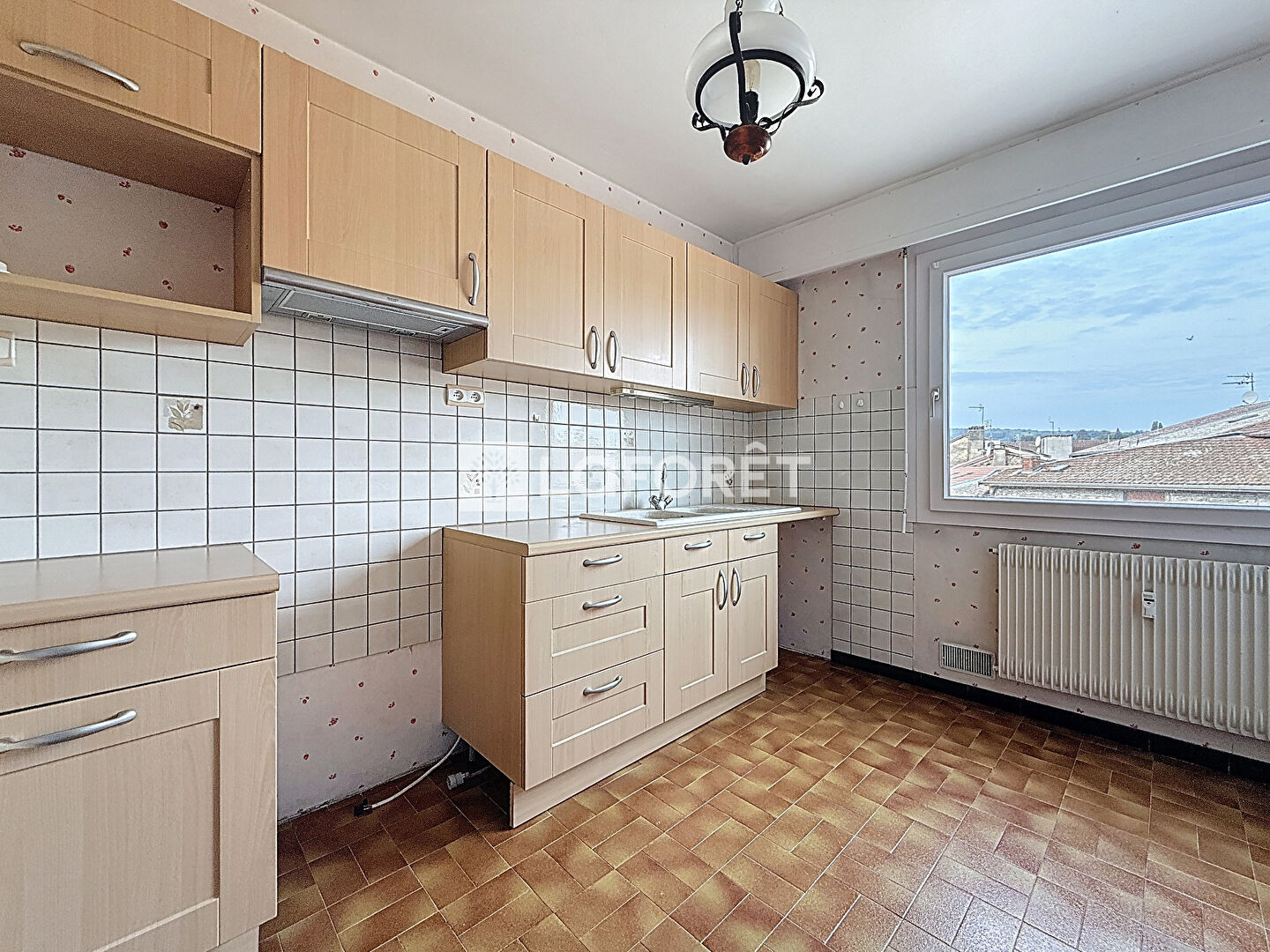 La cuisine séparée et meublée offre un espace fonctionnel et convivial. Le séjour, d'une superficie de près de 30 m², séduit par sa luminosité et son accès direct à un balcon avec vue dégagée orienté à l'ouest, idéal pour profiter des beaux jours.