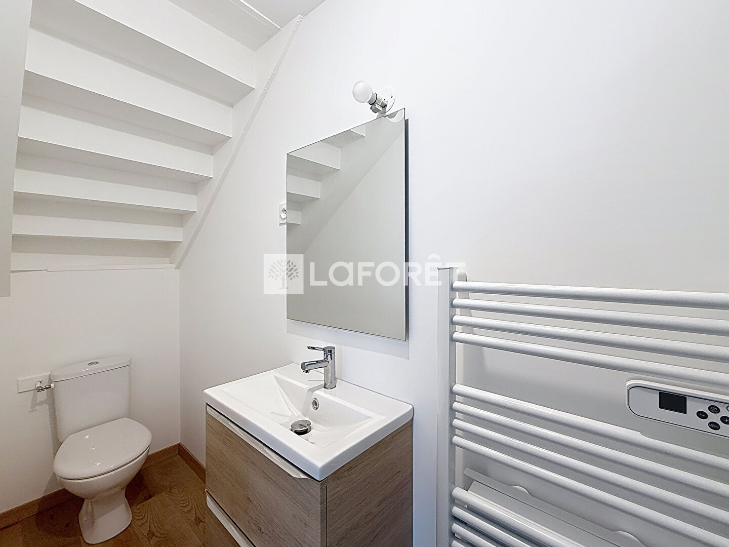 18 m² fonctionnel de plainpied avec accès direct vers le jardin d'environ 110m² . La salle de douches avec wc est également accessible sans escalier. A l'étage, vous profitez d'une belle chambre lumineuse de 12m² ainsi que d'une petite chambre ou bureau de 7,7m². En complément, sous la partie habitable, cave de 26,5m² pour espace de stockage, accessible par la ruelle et à coté 2 dépendances.