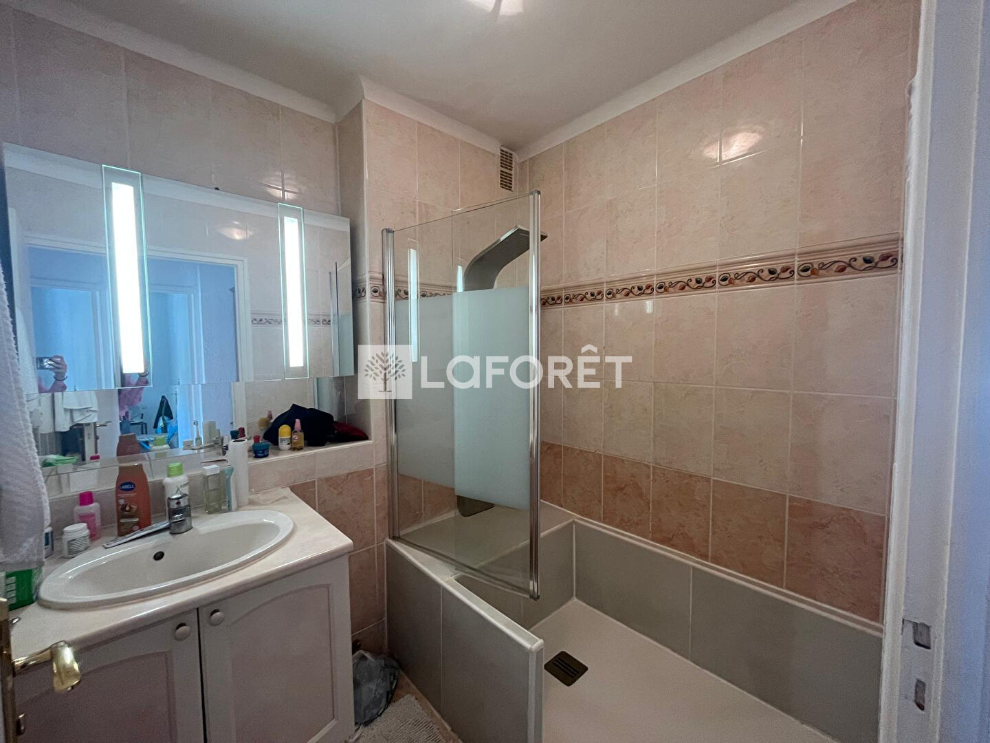 Appartement 3 pièces de 60 m², comprenant un salon-séjour climatisé, une cuisine, deux chambres, une salle d'eau ainsi que des WC séparées.