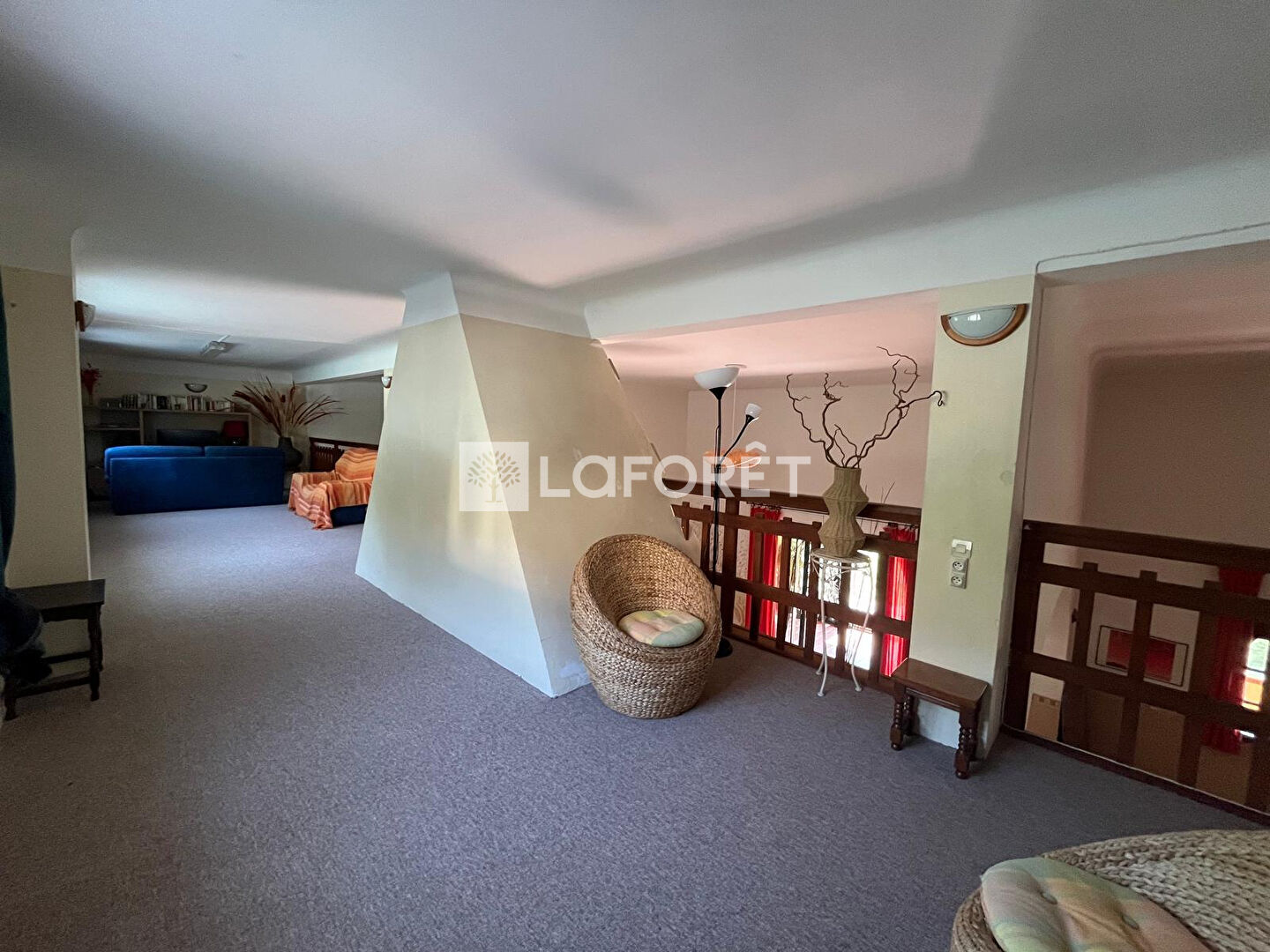 Le premier étage se compose d'une mezzanine surplombant le séjour, offrant une belle perspective sur la pièce principale.