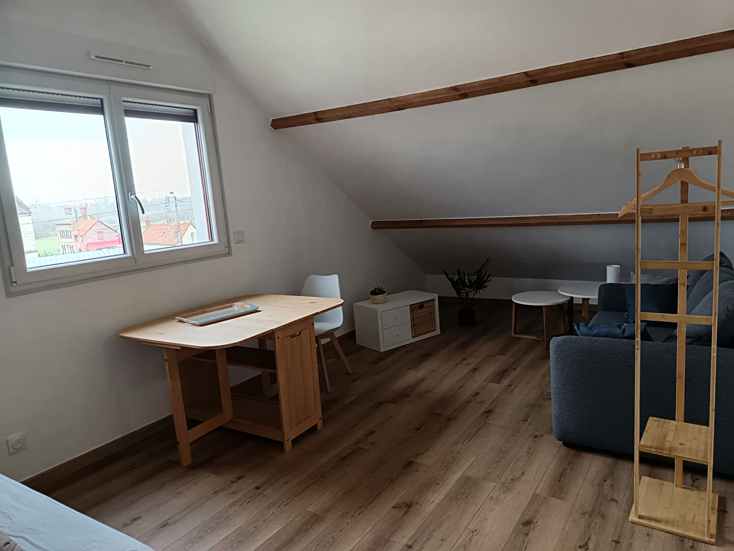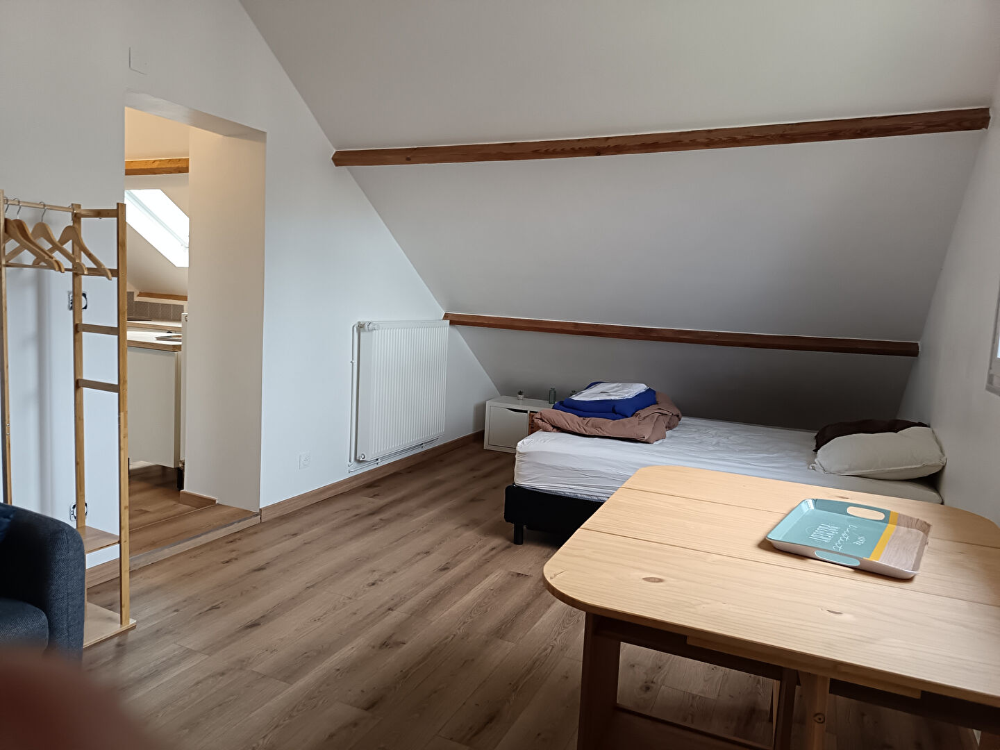 - à l'étage : une pièce palière avec coin salle de bains pouvant servir de couchage pour les amis, un studio comprenant cuisine aménagée, chambre, salle d'eau et wc. Avec une entrée indépendante, cet espace peut être loué.