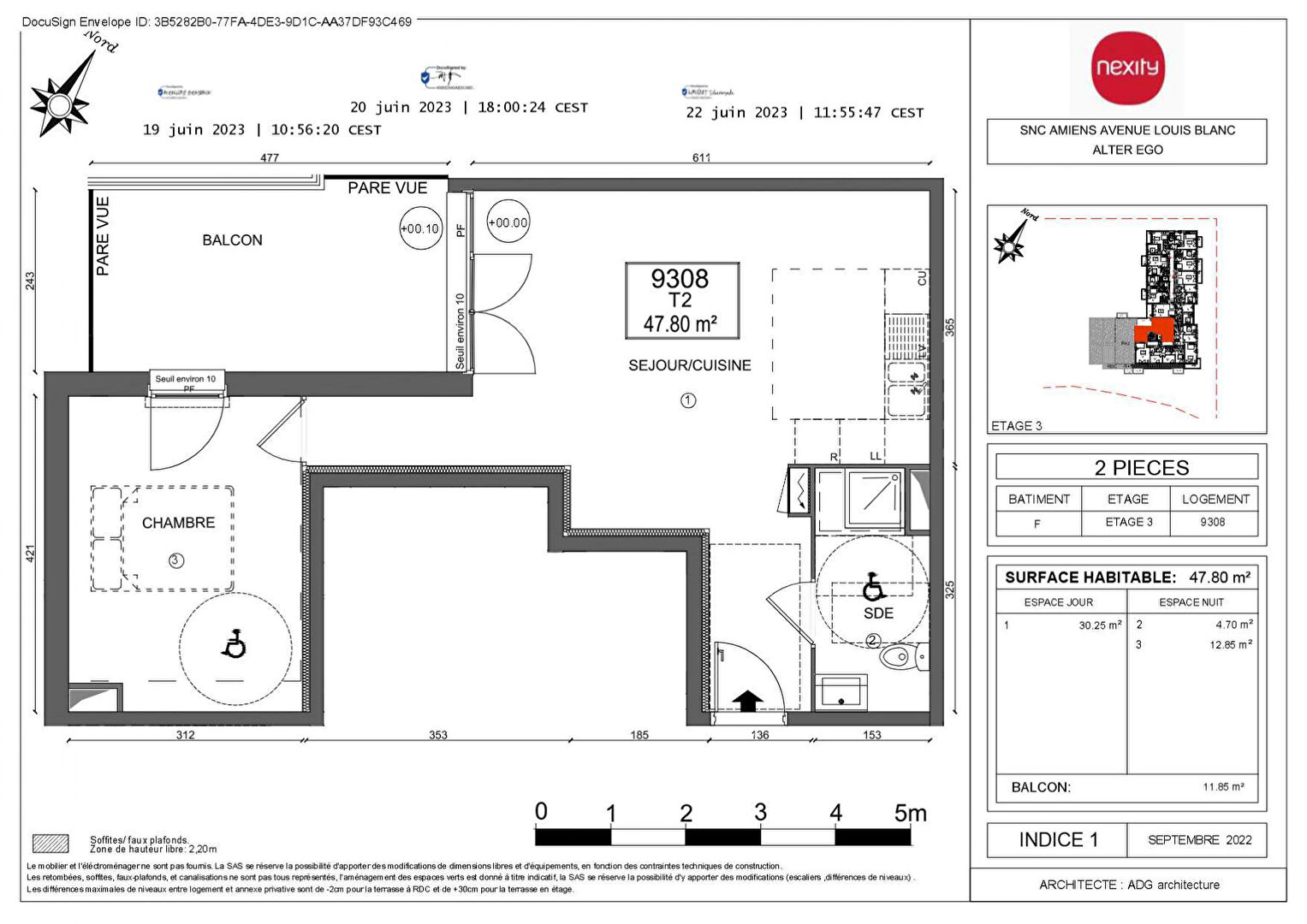Un appartement 2 pièces en VEFA du programme "ALTER EGO" comprenant : séjour cuisine, une chambre et une salle d'eau avec WC. Cet appartement de 47.8m2 disposera d'un grand balcon de 11.85m2 et d'une place de parking extérieure. Situé au 3ème étage dans une résidence bordée au nord par un espace vert, à l'Est par un cheminement piétonnier, au Sud par un espace vert