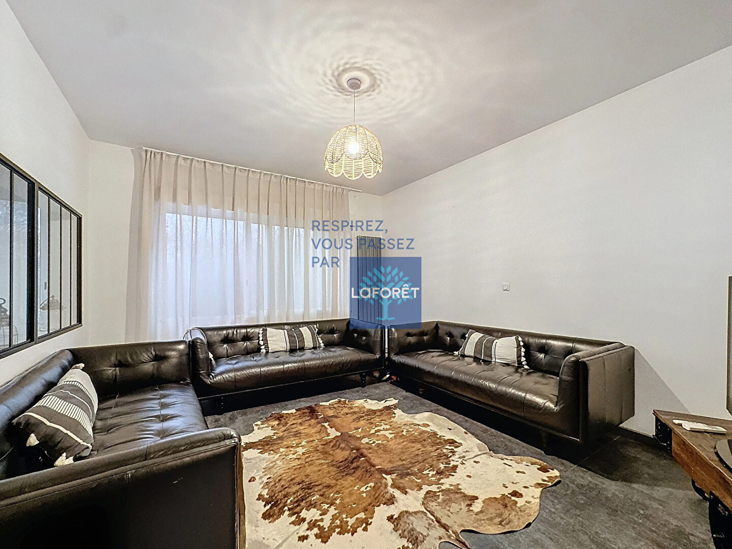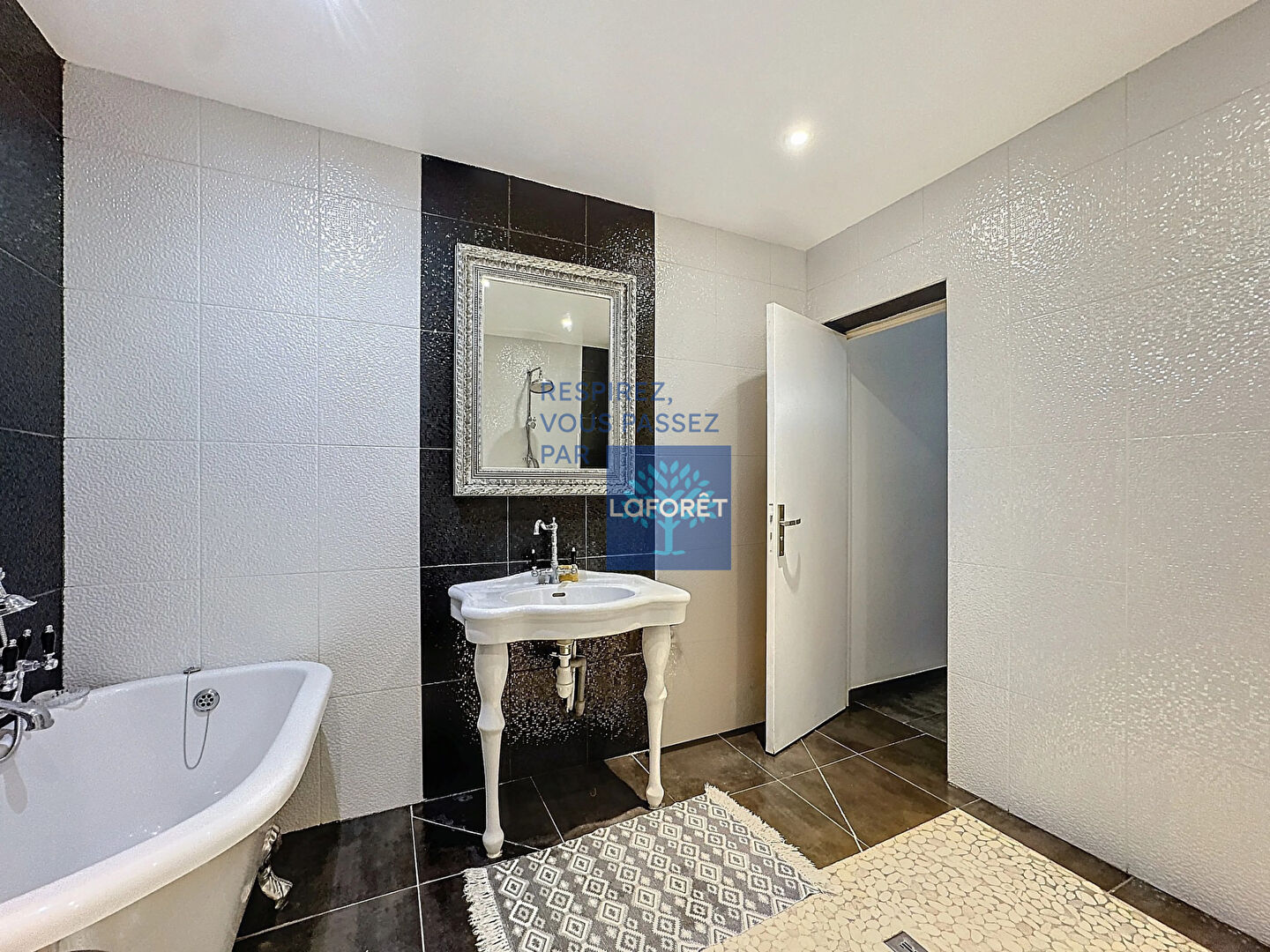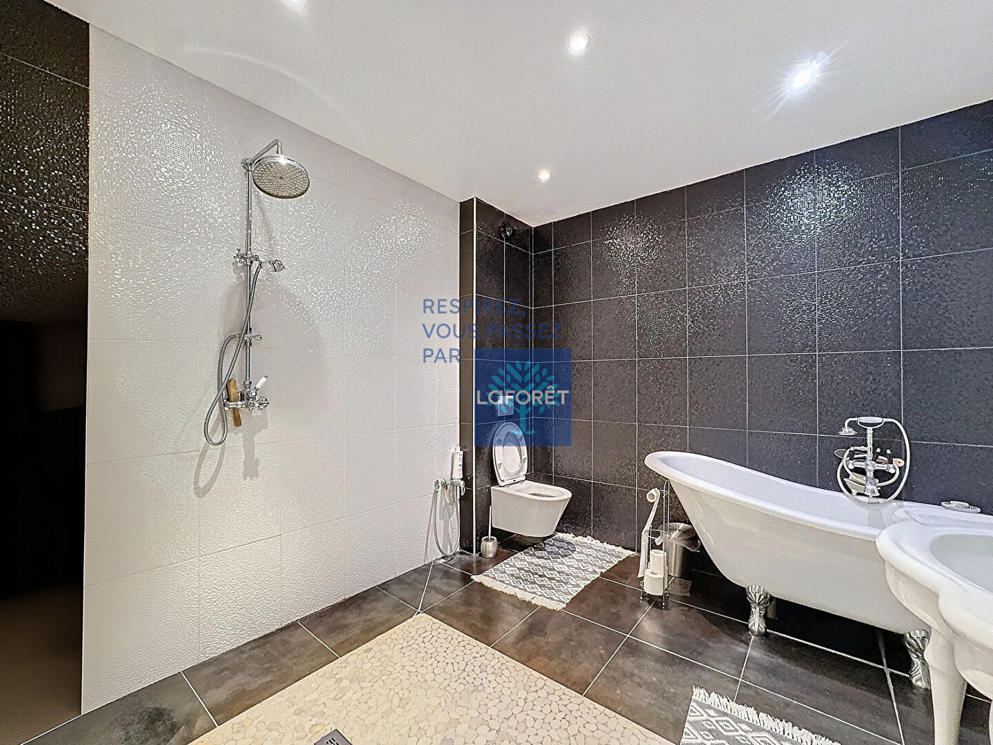 La maison se compose au rez-de-chaussée d'une belle entrée, d'un double séjour de plus de 50m2, d'une cuisine moderne aménagée et équipée, d'une chambre avec douche et WC, d'une grande salle de bains avec baignoire et douche et d'un WC séparé.
