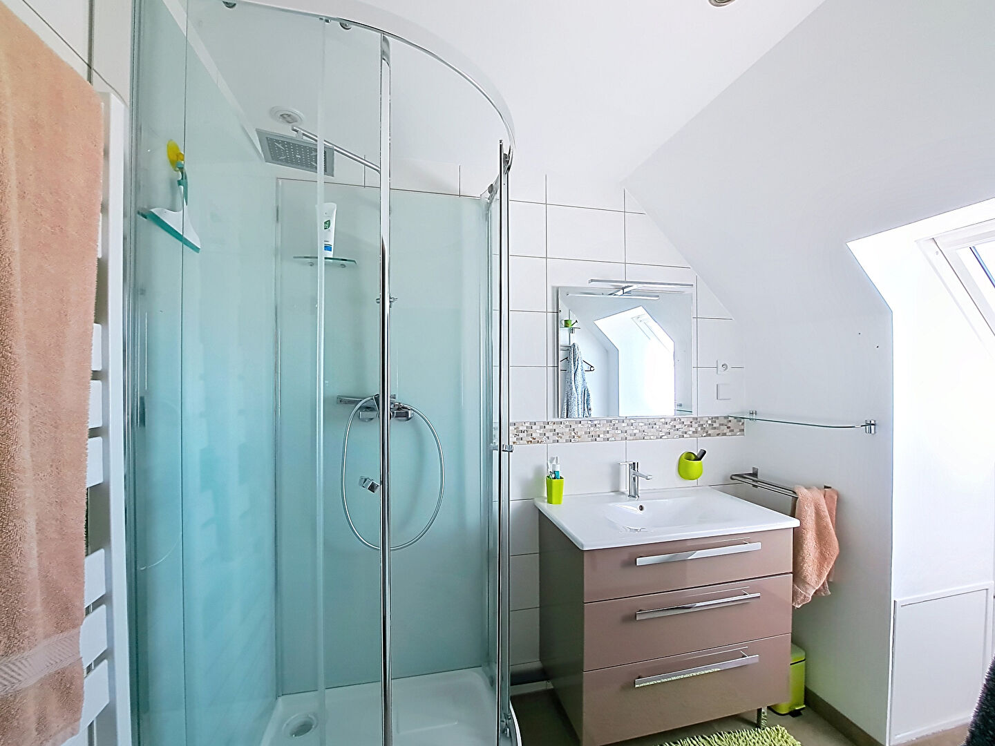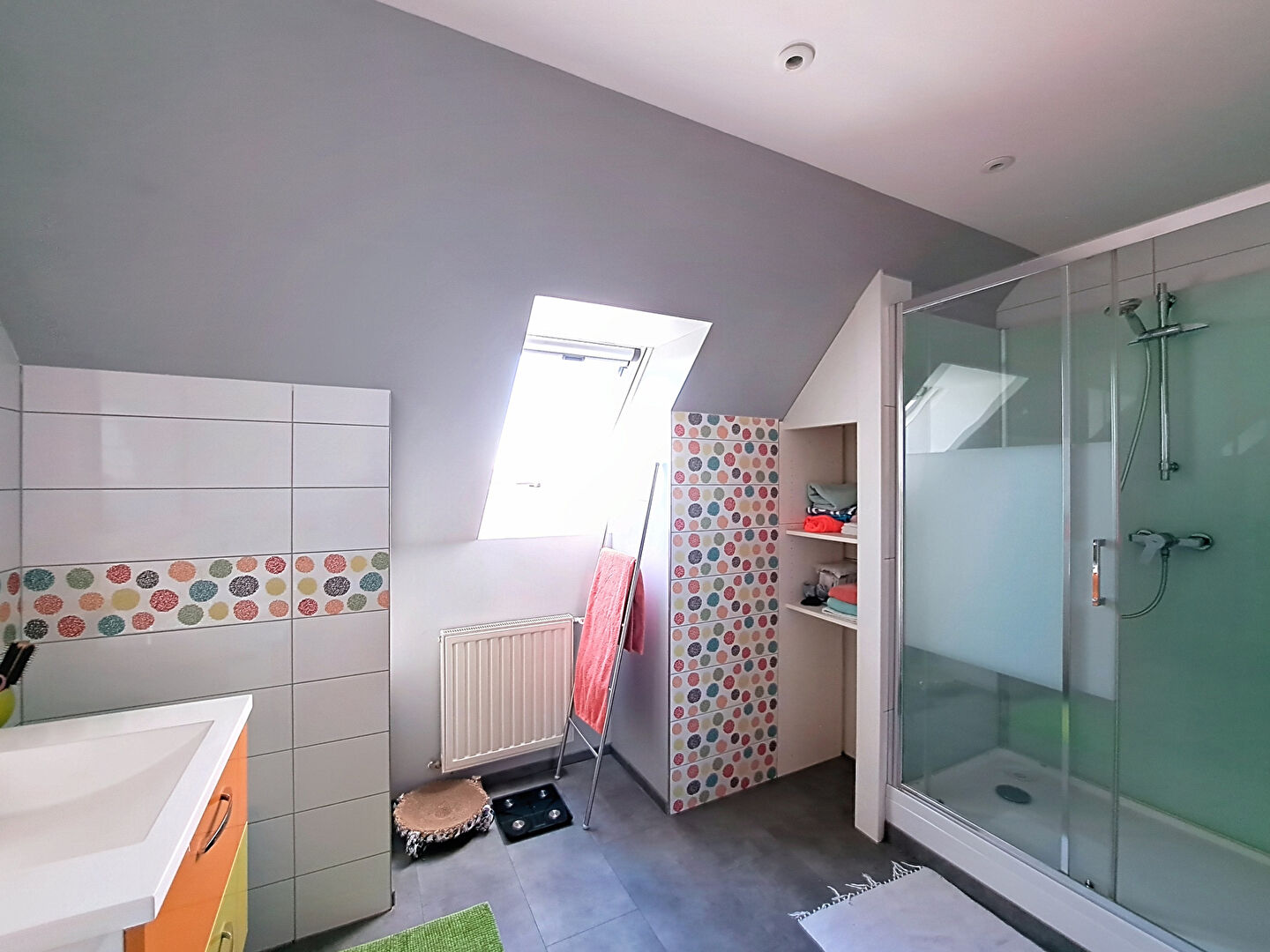 A l' étage, on retrouve un palier avec rangement, une suite parentale avec dressing aménagé et salle d'eau, ainsi que 3 autres chambres, une grande salle d'eau avec double vasques et un WC indépendant.