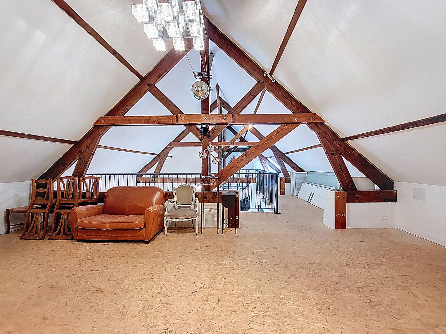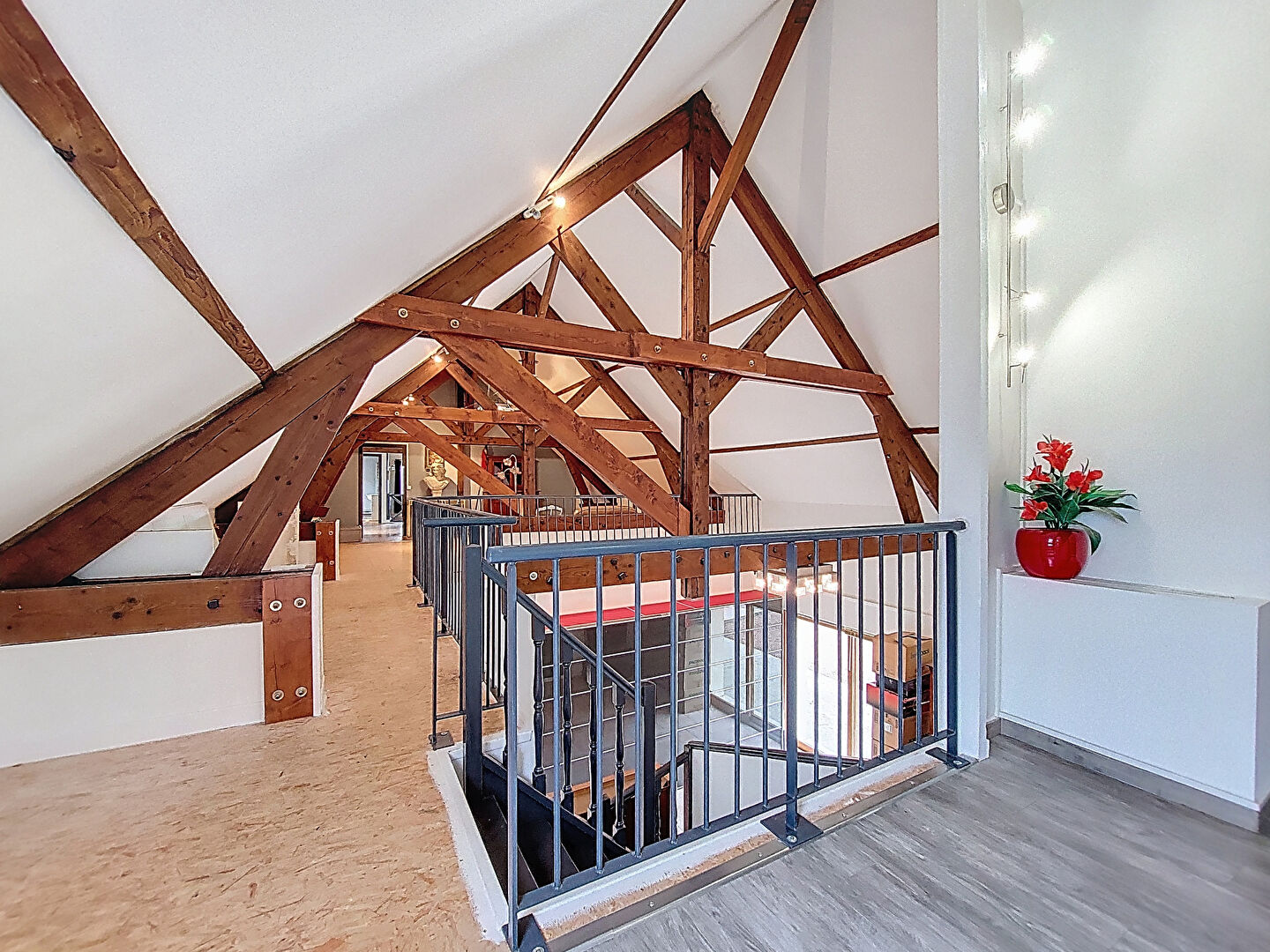 Un bel espace mezzanine sous charpente apparente, parfait pour un bureau, une 4ème chambre, une salle de jeux ou encore un coin loisirs.