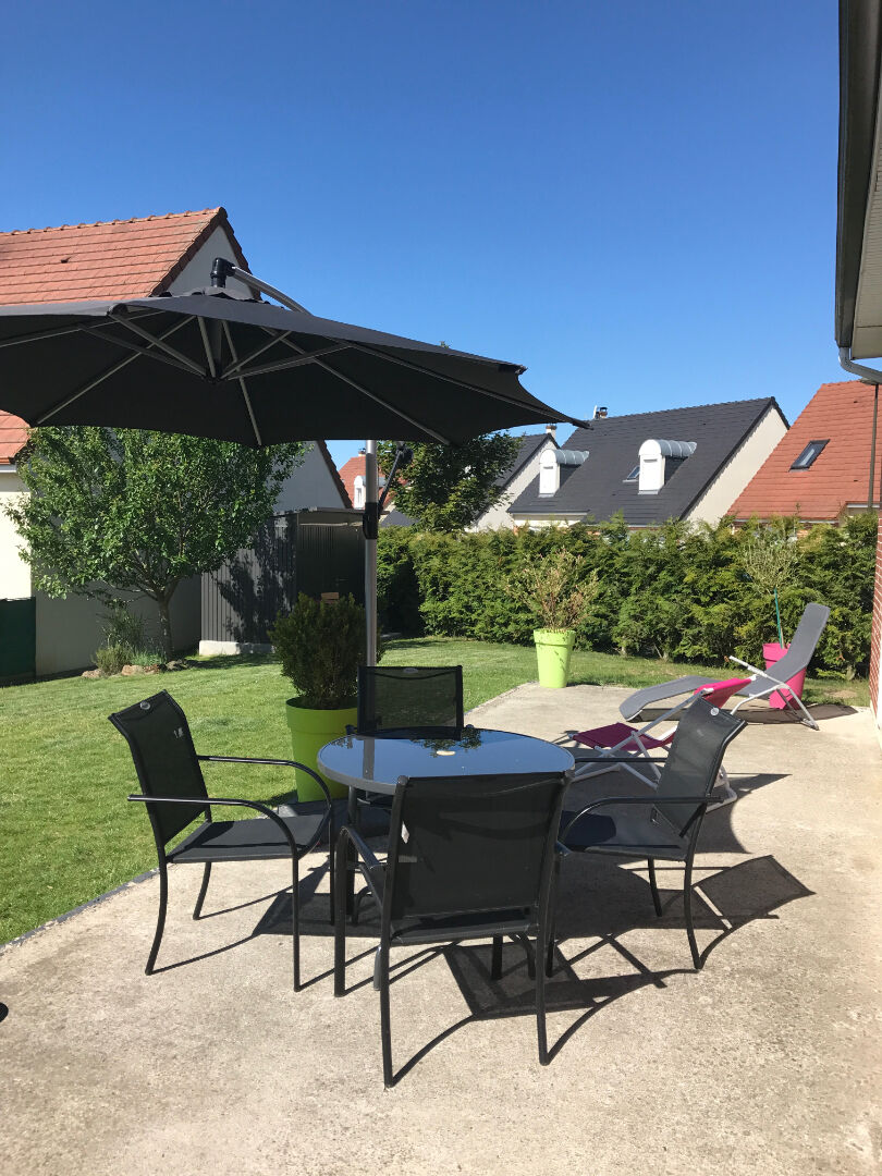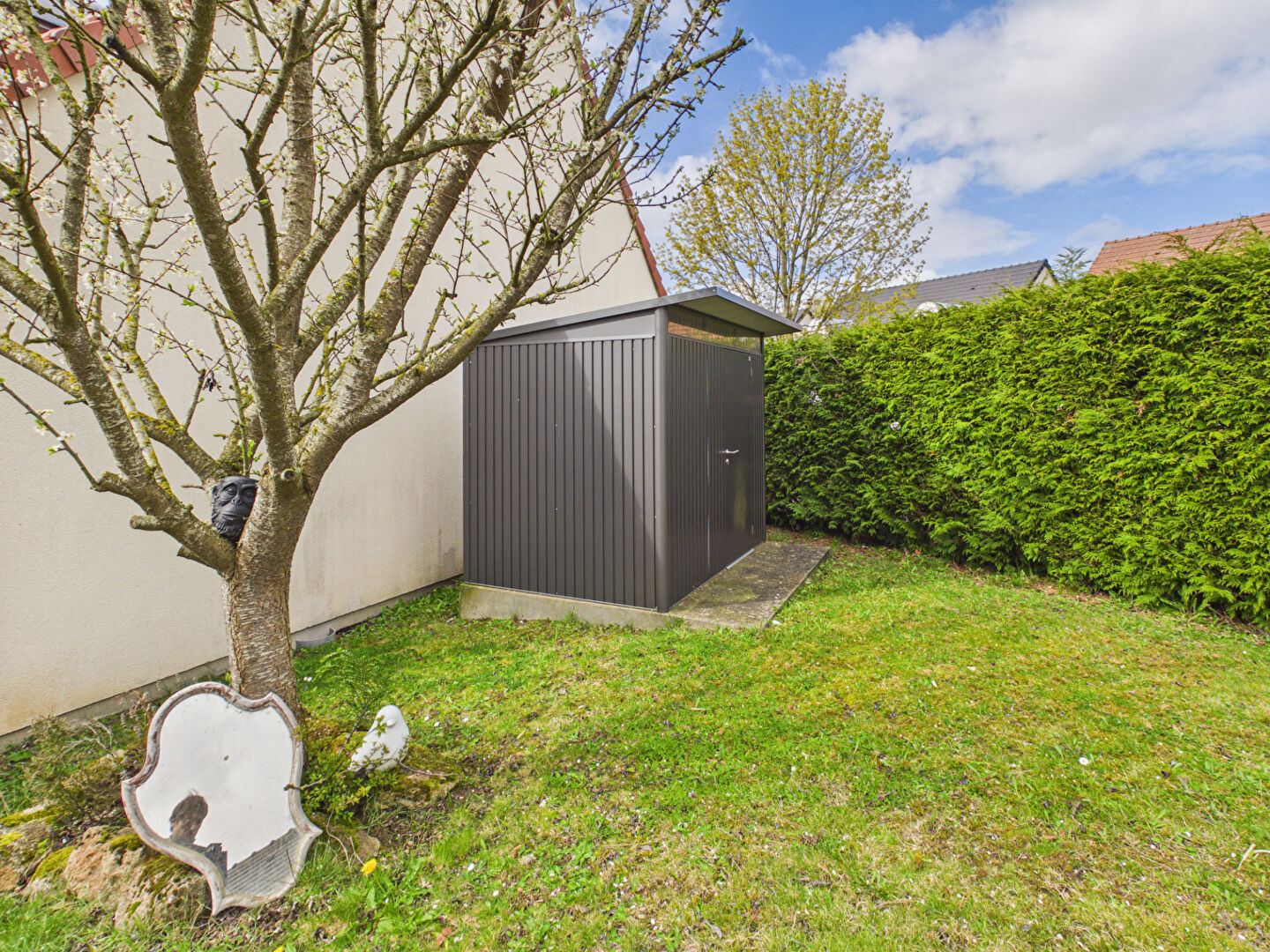 La maison possède également une terrasse, un jardin avec un abri de jardin et un garage.