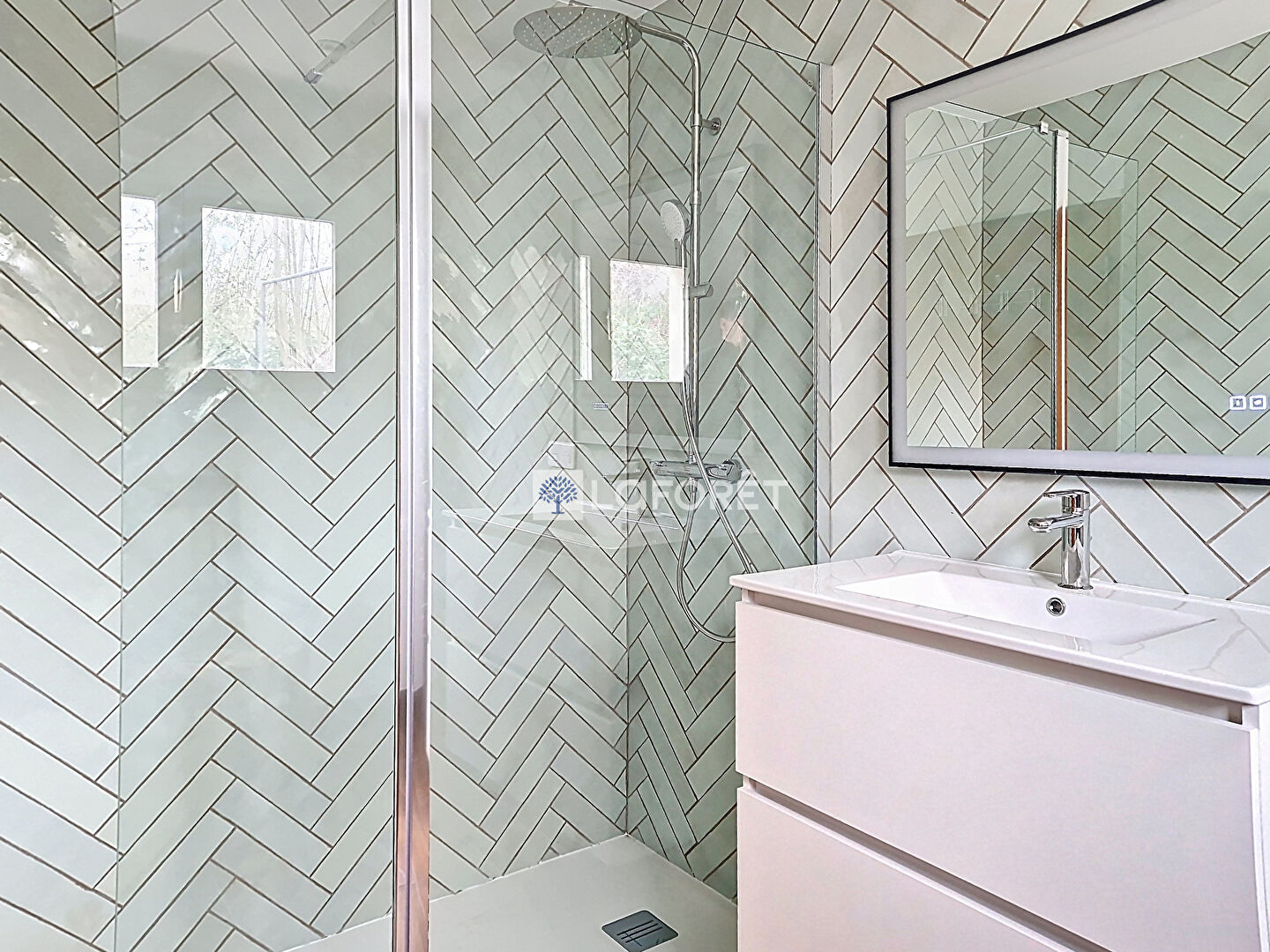 Elle se compose d'une entrée desservant une cuisine ainsi qu'un vaste séjour lumineux ouvert sur le jardin. Vous profiterez également d'une grande chambre, de deux salles d'eau et de WC indépendants.