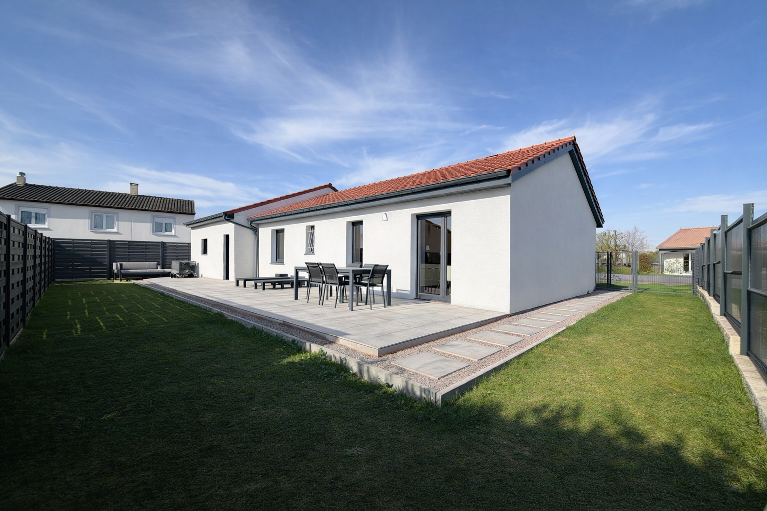 Les éléments pratiques (garage, buanderie, bureau/dressing, jardin facile d'entretien) et la configuration de plain-pied font de ce bien une solution clé-en-main, confortable et économe en énergie, parfaitement adaptée à une famille ou à des acquéreurs recherchant un cadre de vie serein.