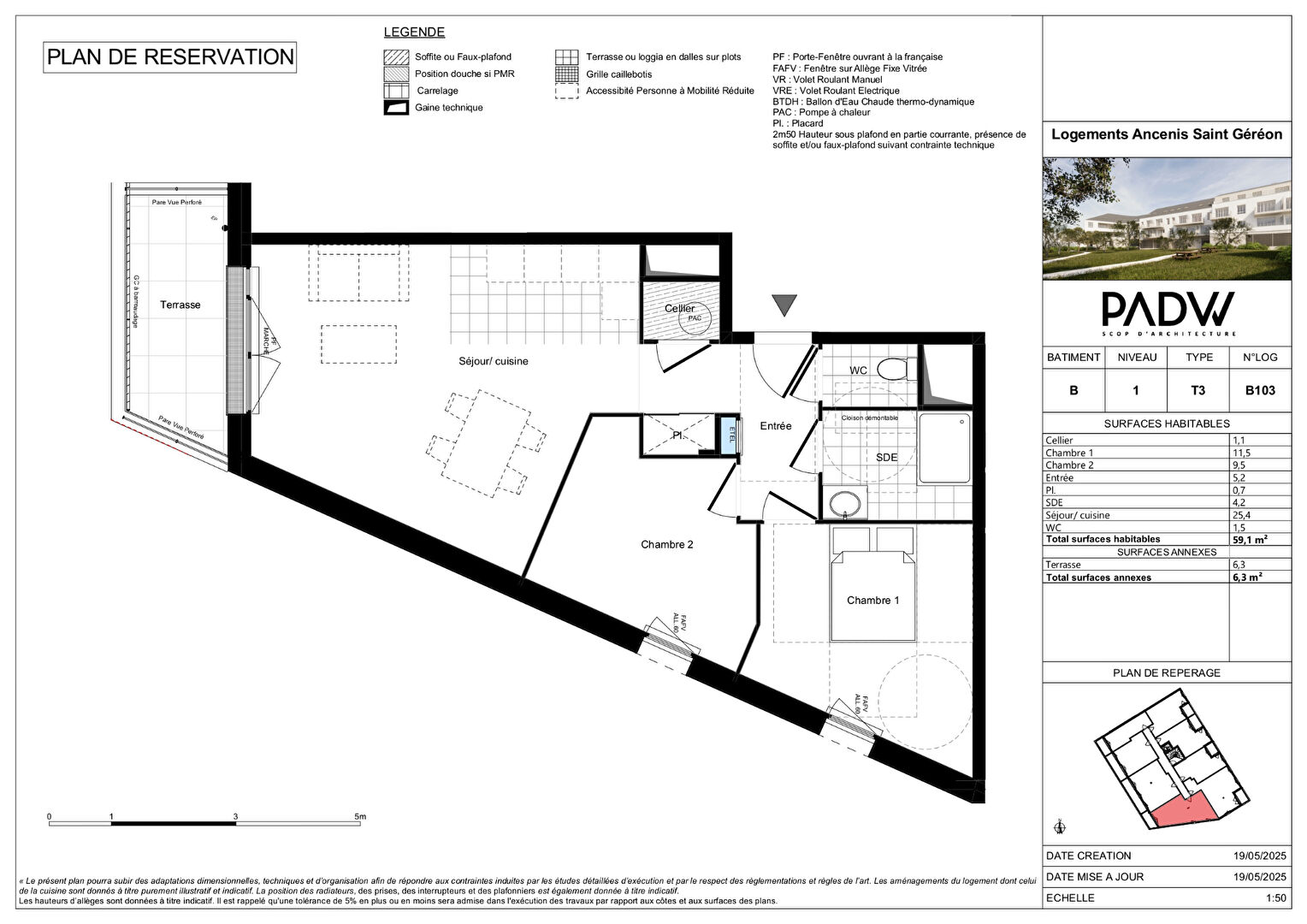 59 m² • 3 pièces • 2 chambres